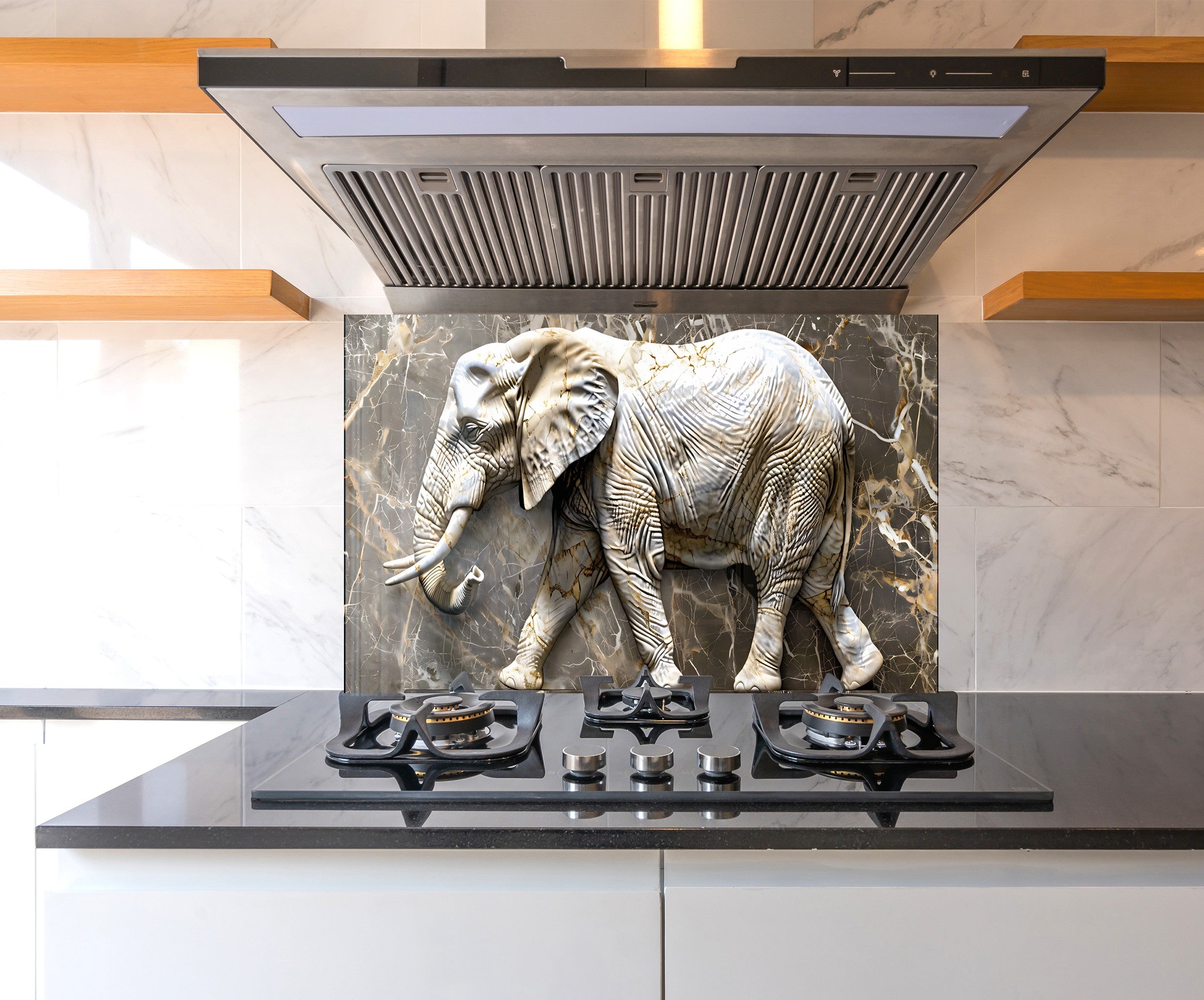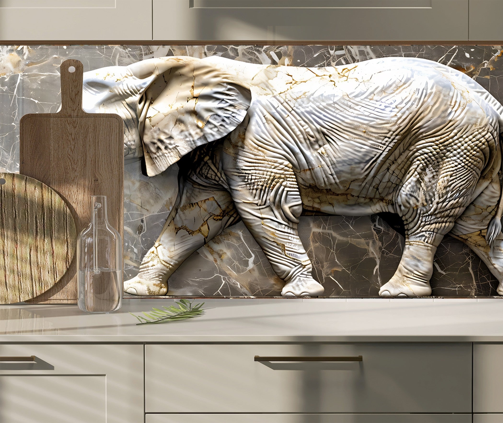 Upgrade your kitchen with the Elegant Elephant Marble Glass Kitchen Backsplash, featuring a stunning 3D elephant sculpture set against a luxurious marble backdrop. The blend of sophisticated marble textures and ultra-realistic wildlife art creates an opulent safari ambiance, making it an excellent choice for nature lovers and high-end interior designs.