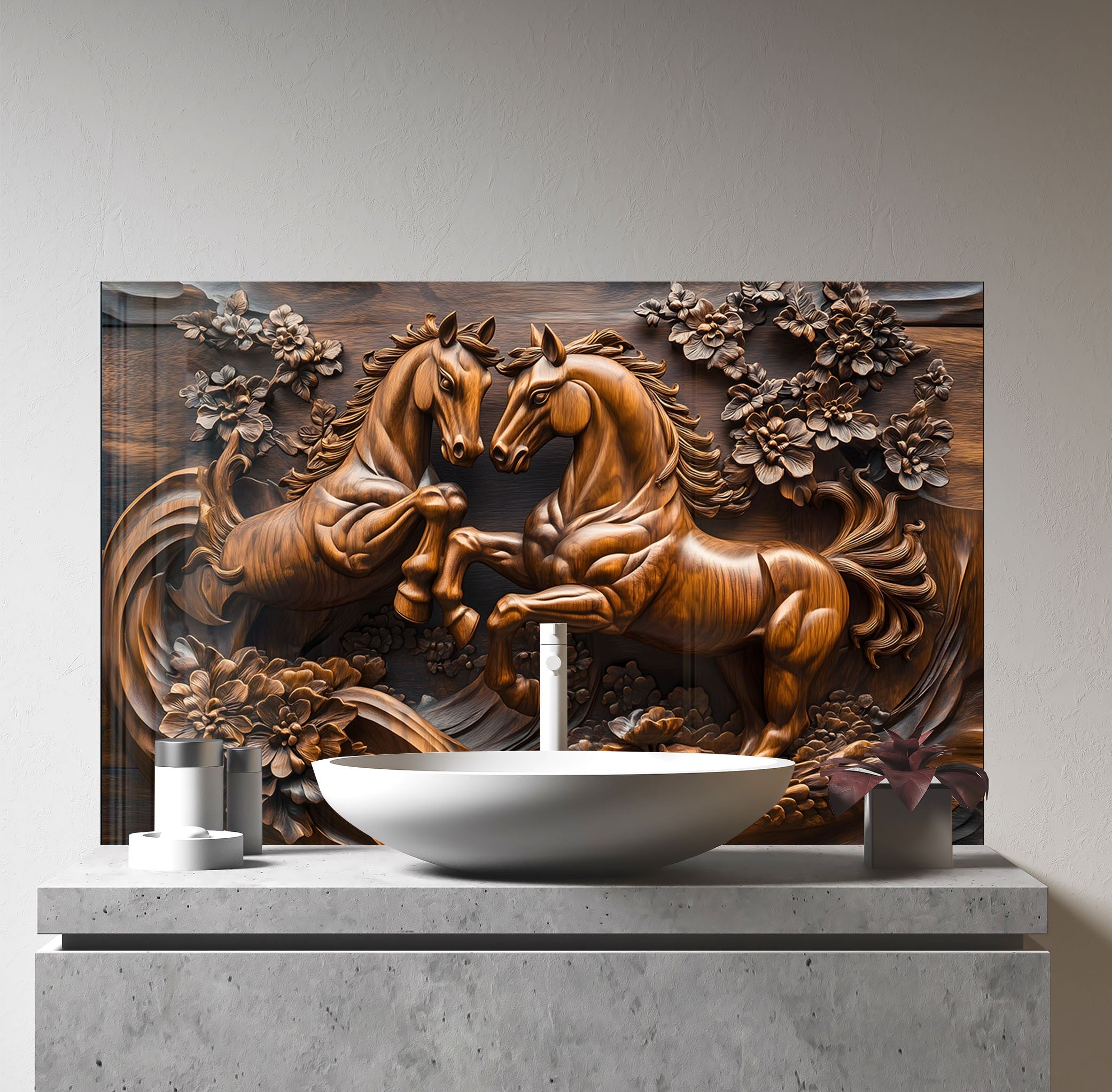 Transform your kitchen into a space of grace, power, and artistry with the Majestic Stallions Glass Backsplash. Featuring two intricately detailed horses in motion, this backsplash is a symbol of strength, freedom, and beauty, making it a perfect addition for equestrian lovers, luxury kitchen designs, and nature-inspired home décor.