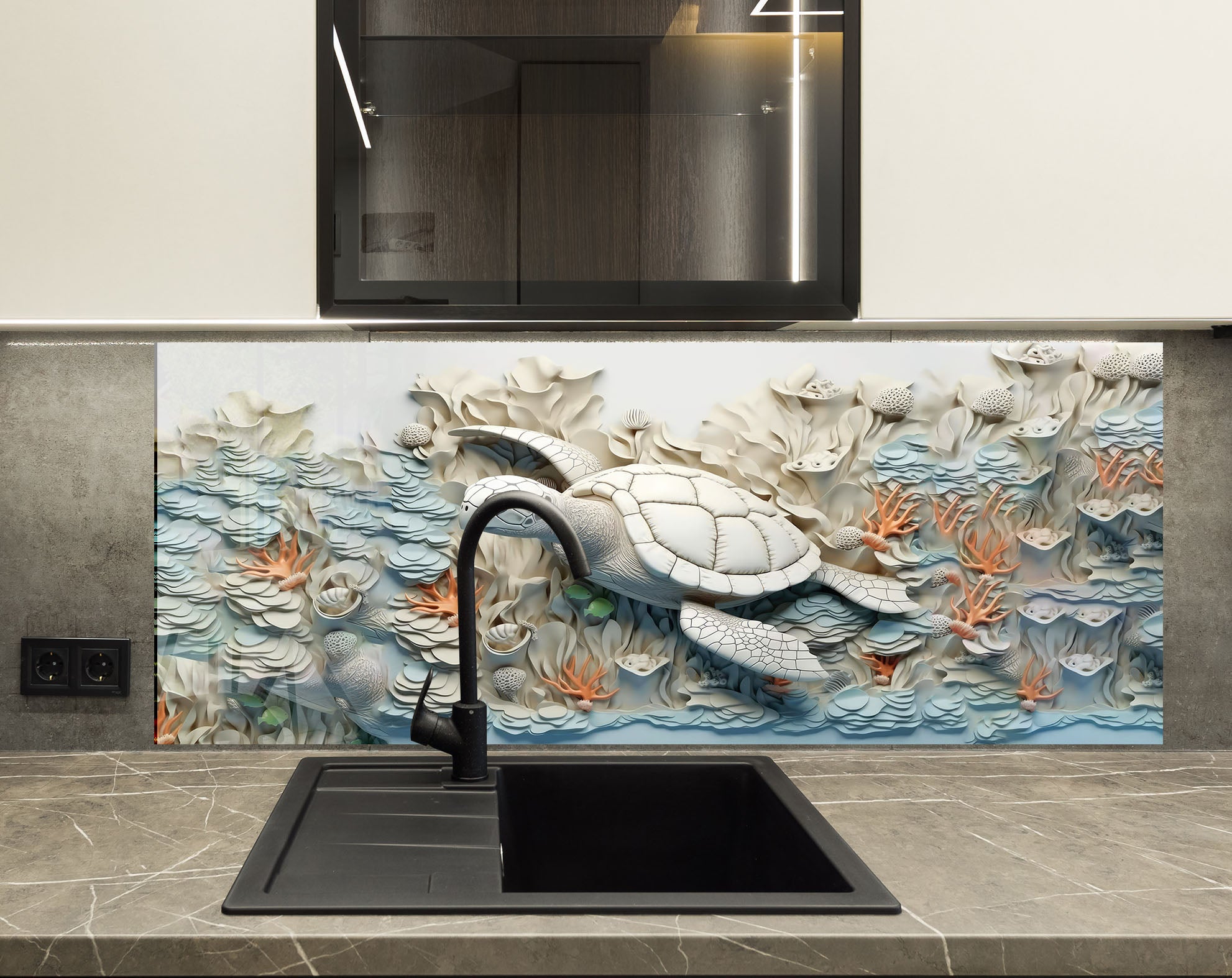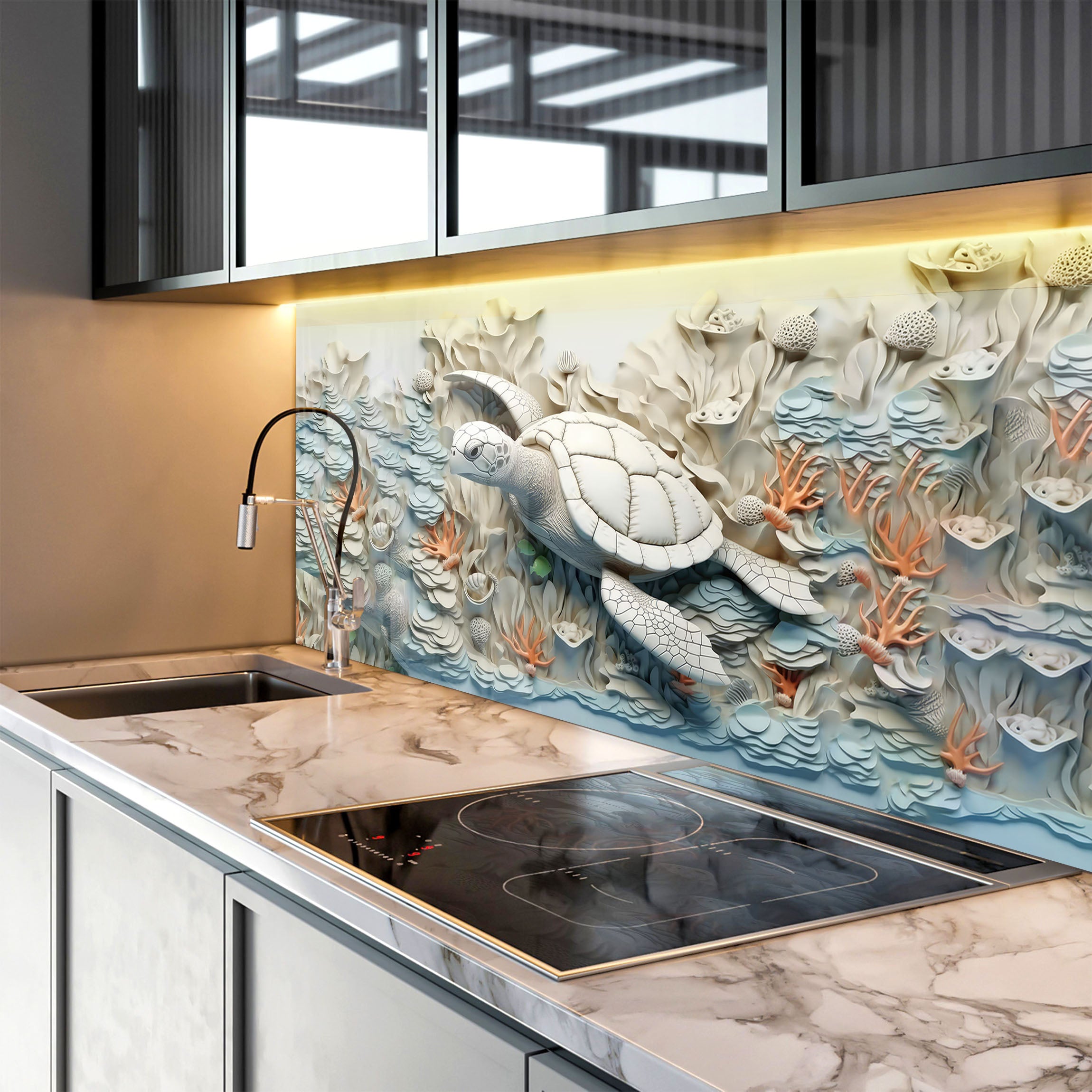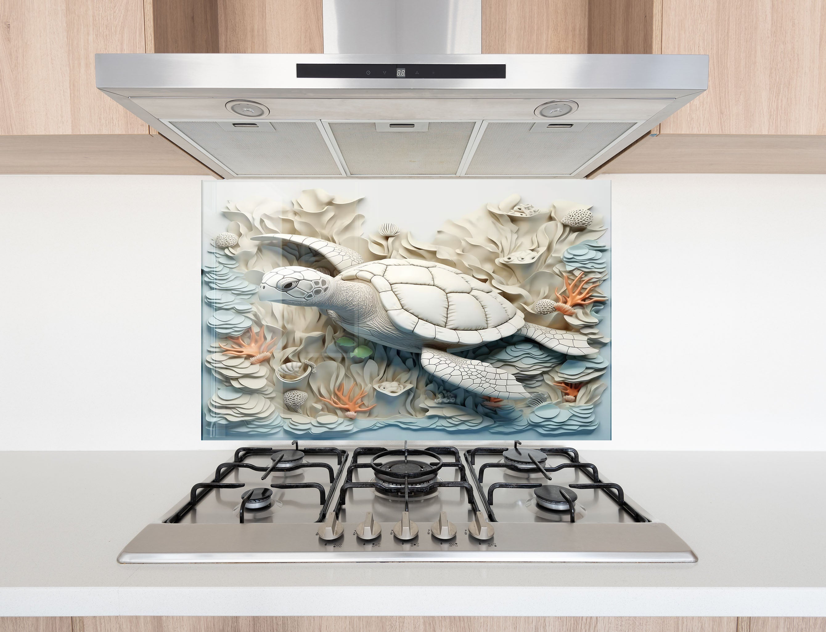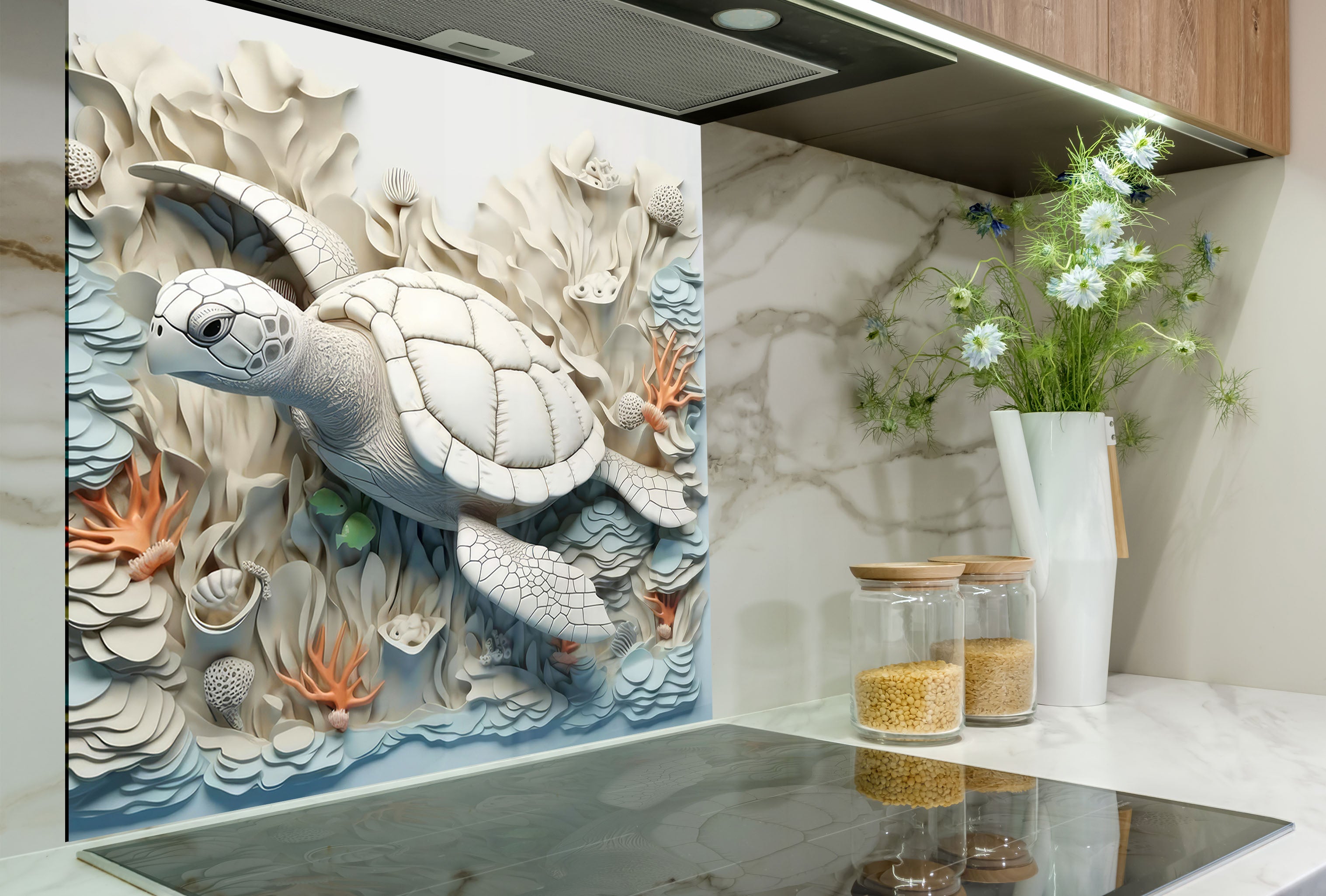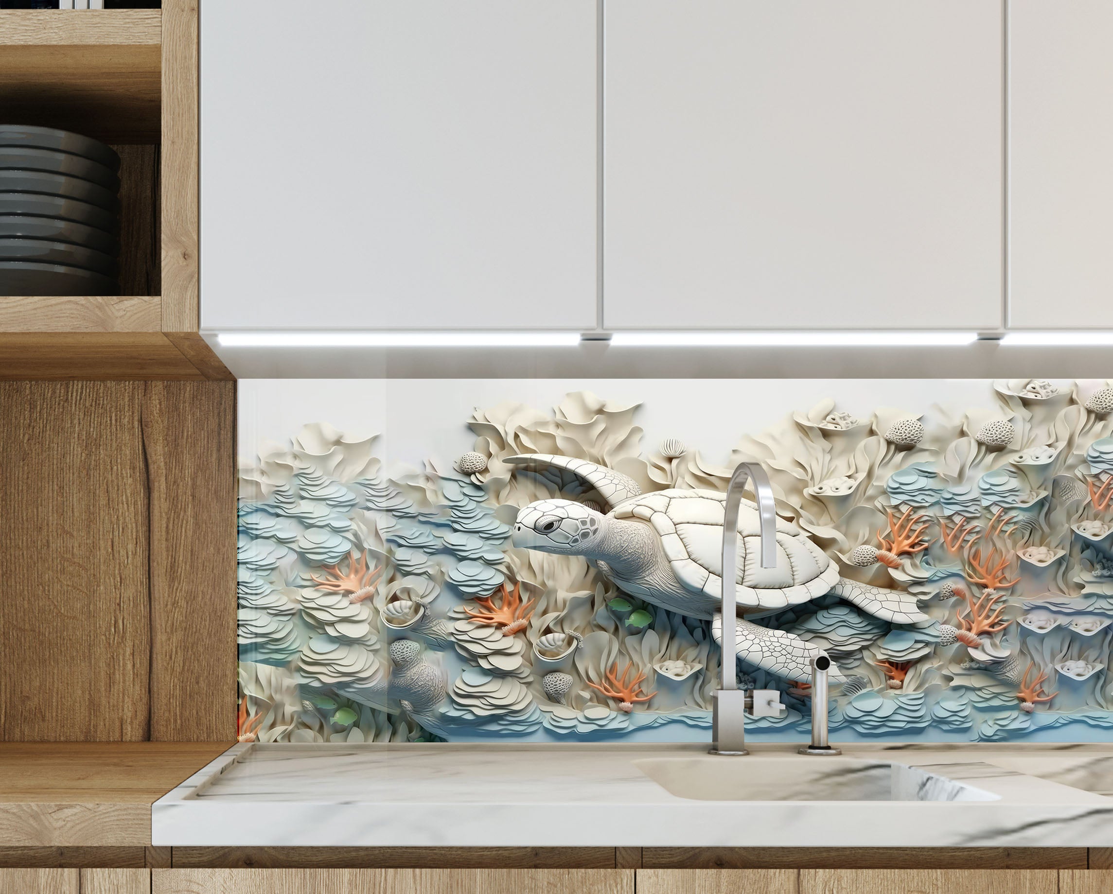 Dive into the beauty of the ocean with the Tranquil Sea Turtle – Glass Kitchen Backsplash, featuring a breathtaking underwater scene of a graceful sea turtle gliding through a vibrant coral reef. This stunning 8K ultra-HD UV-printed backsplash captures the serenity and depth of marine life, bringing a sense of calm and natural elegance to your kitchen. The soft, earthy tones and intricate 3D-like textures make this a unique statement piece. Crafted from 4mm reinforced tempered glass, it is heat-resistant, waterproof, scratch-proof, and easy to clean, offering both durability and style. 🌊🐢✨