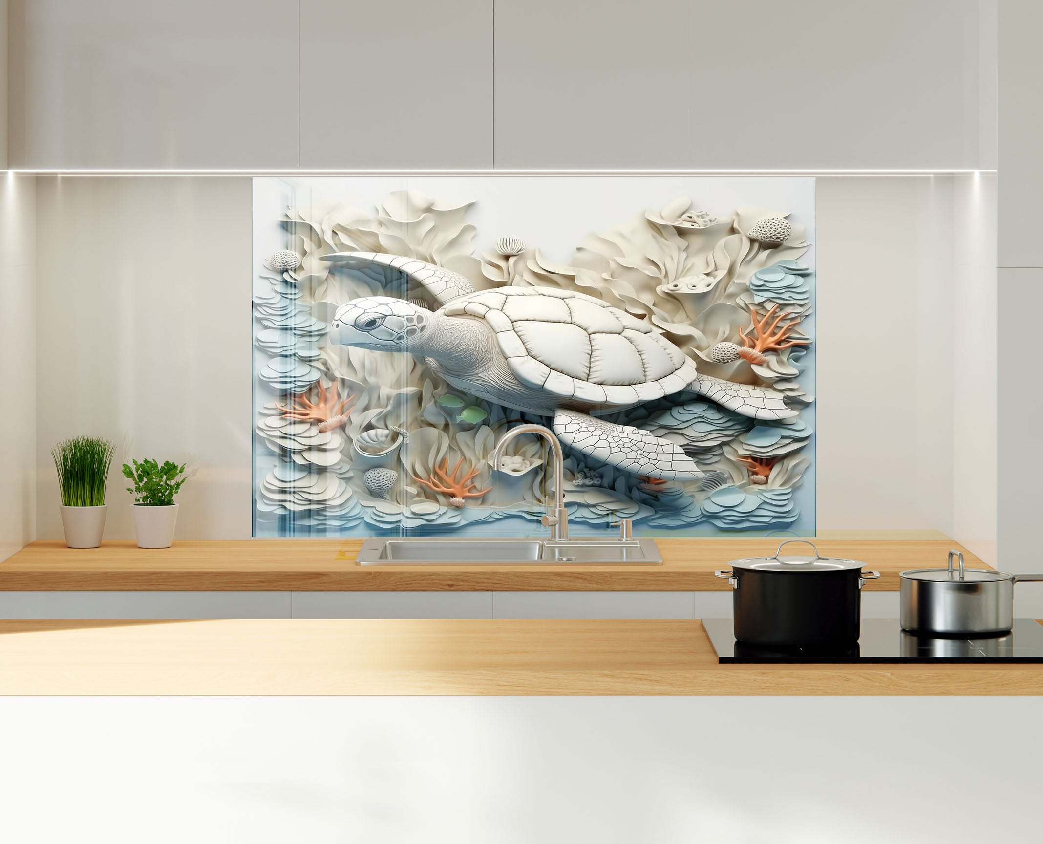 ✨ Bring the peaceful beauty of marine life into your home with the Tranquil Sea Turtle – Glass Kitchen Backsplash and create a serene, ocean-inspired atmosphere in your space! 🌊🐢