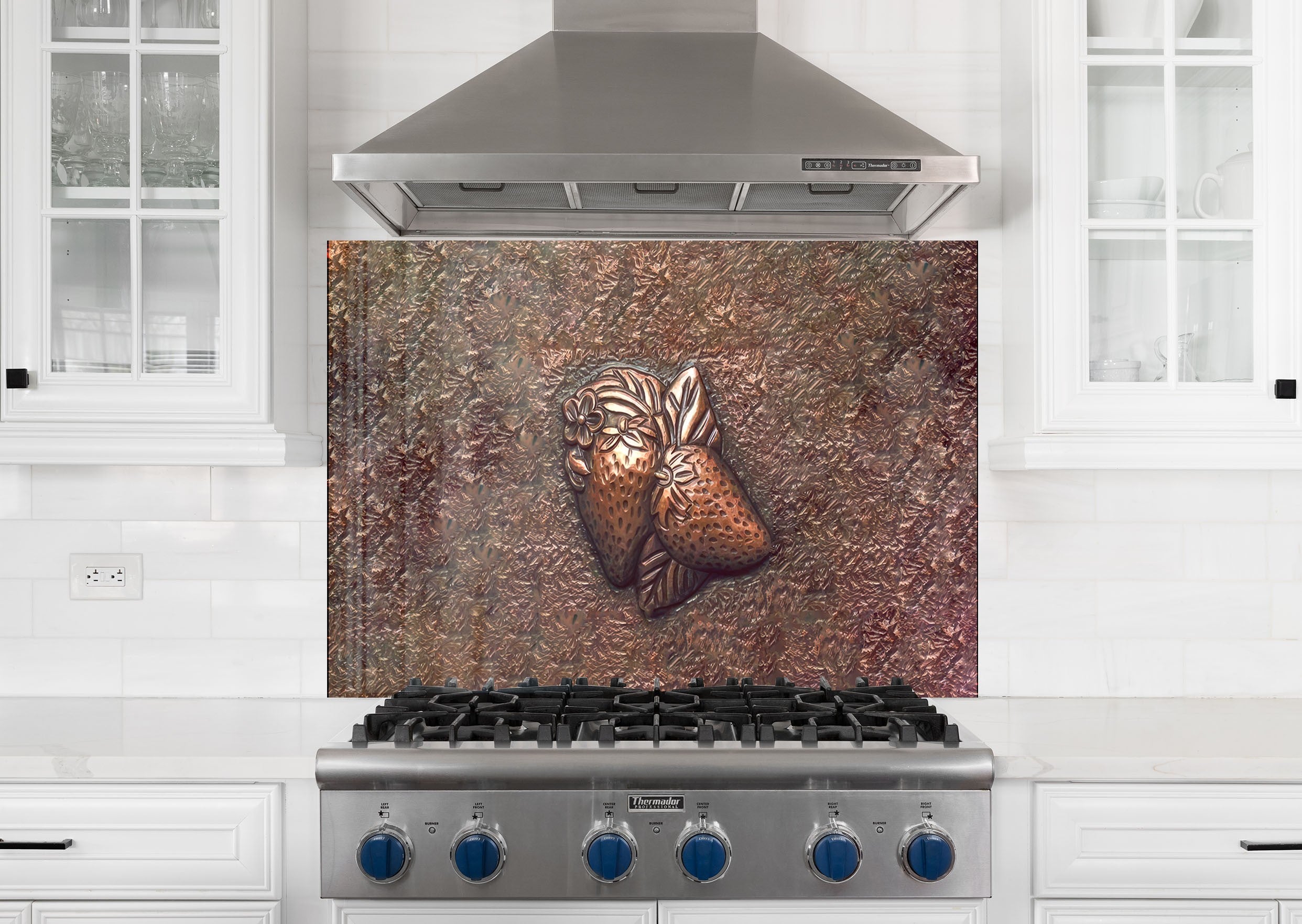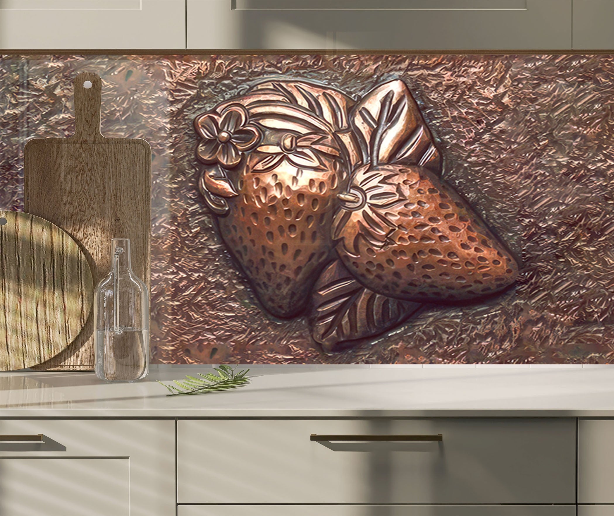 Elegant Strawberry Glass Kitchen Backsplash – Metallic Fruit Design