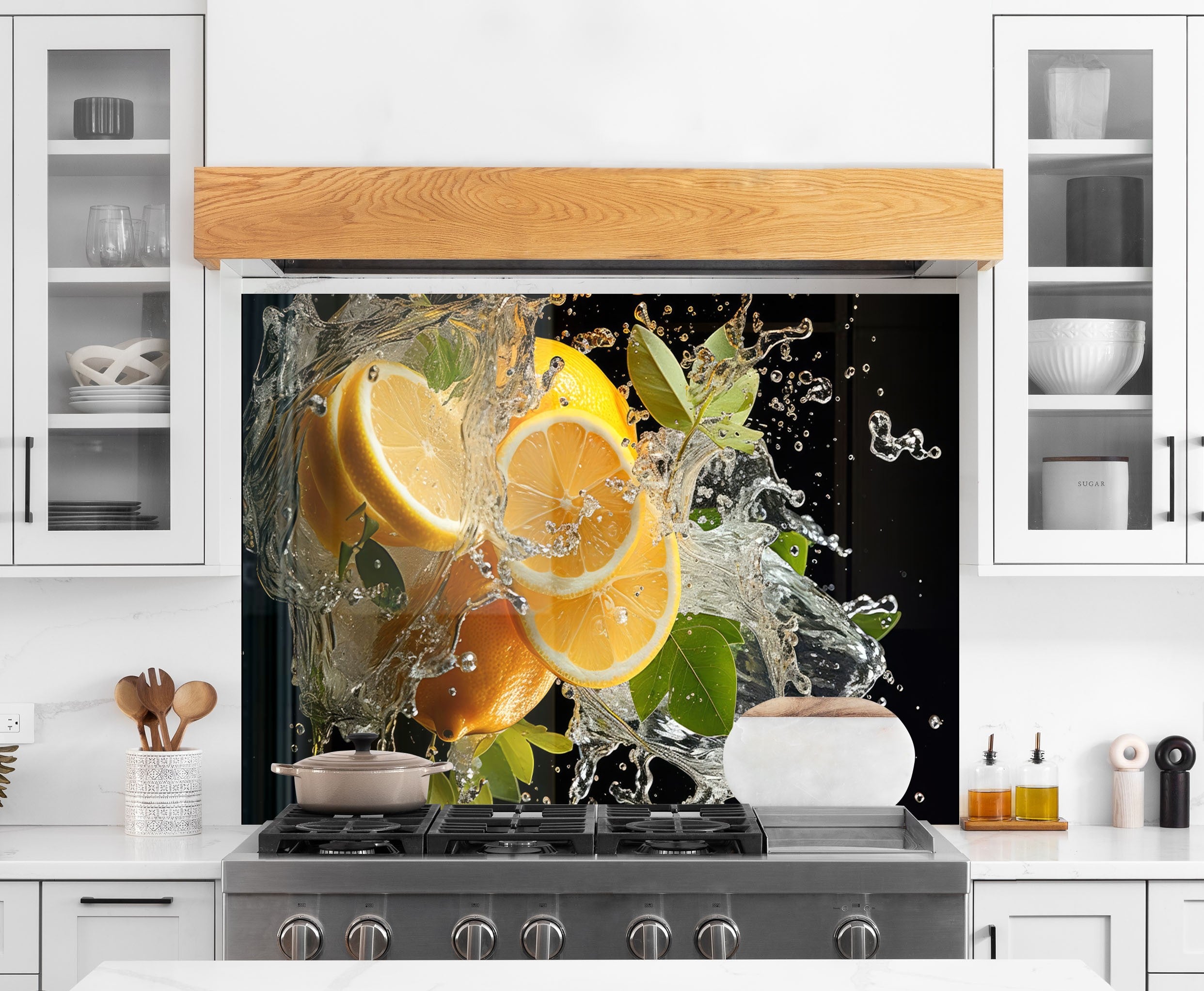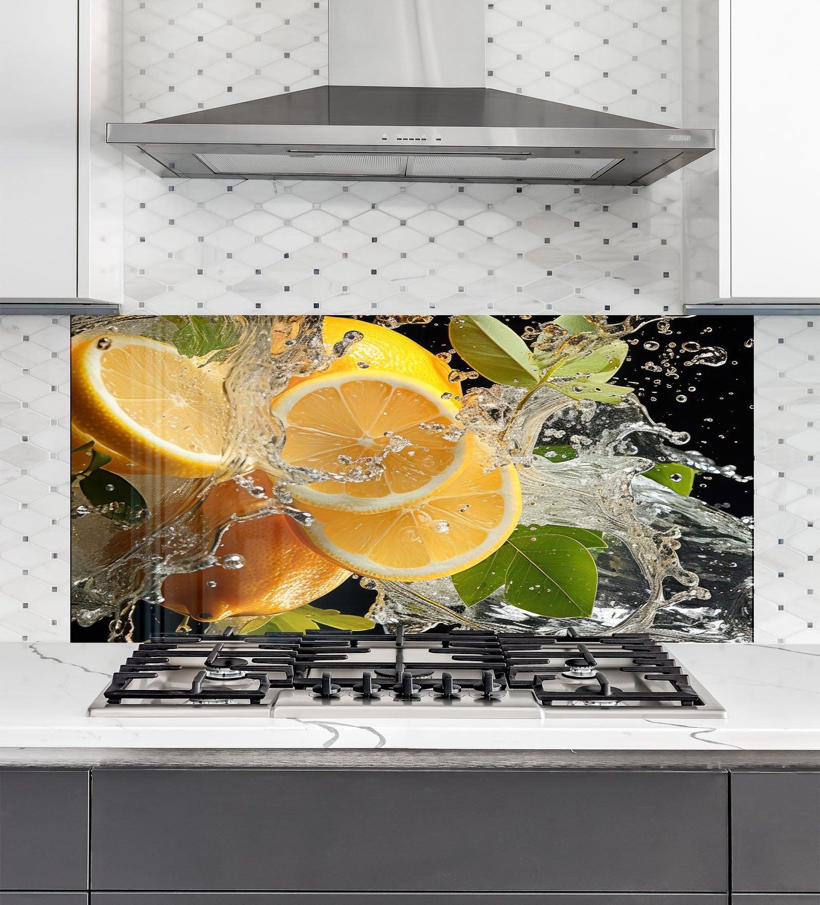 Revitalize your kitchen with the Lemon Burst Glass Kitchen Backsplash – Refreshing Citrus Splash Design. This vivid design showcases the zesty freshness of lemons splashing through water, creating a lively and refreshing atmosphere in your kitchen. Whether you're a fan of bright, bold colors or simply love citrus, this backsplash adds both elegance and excitement to your space. Perfect for those seeking a modern, vibrant aesthetic with a touch of nature’s beauty.
