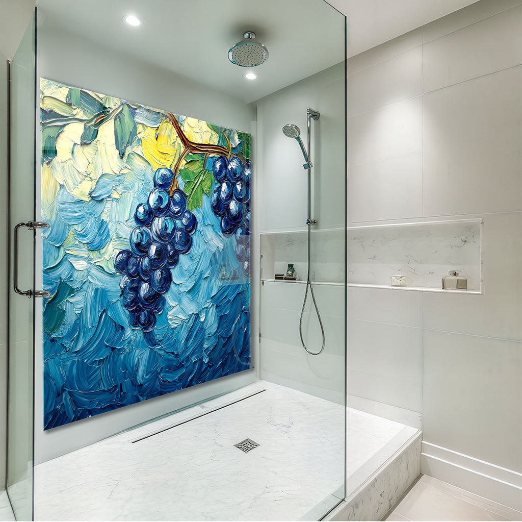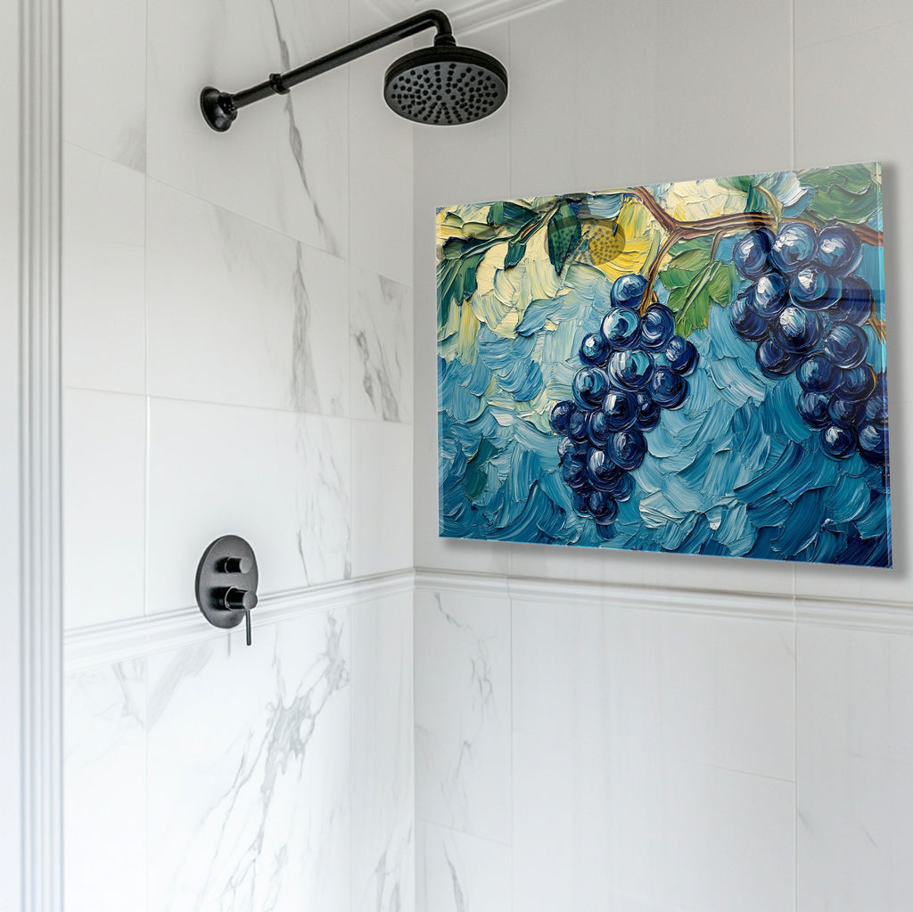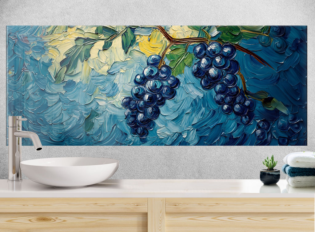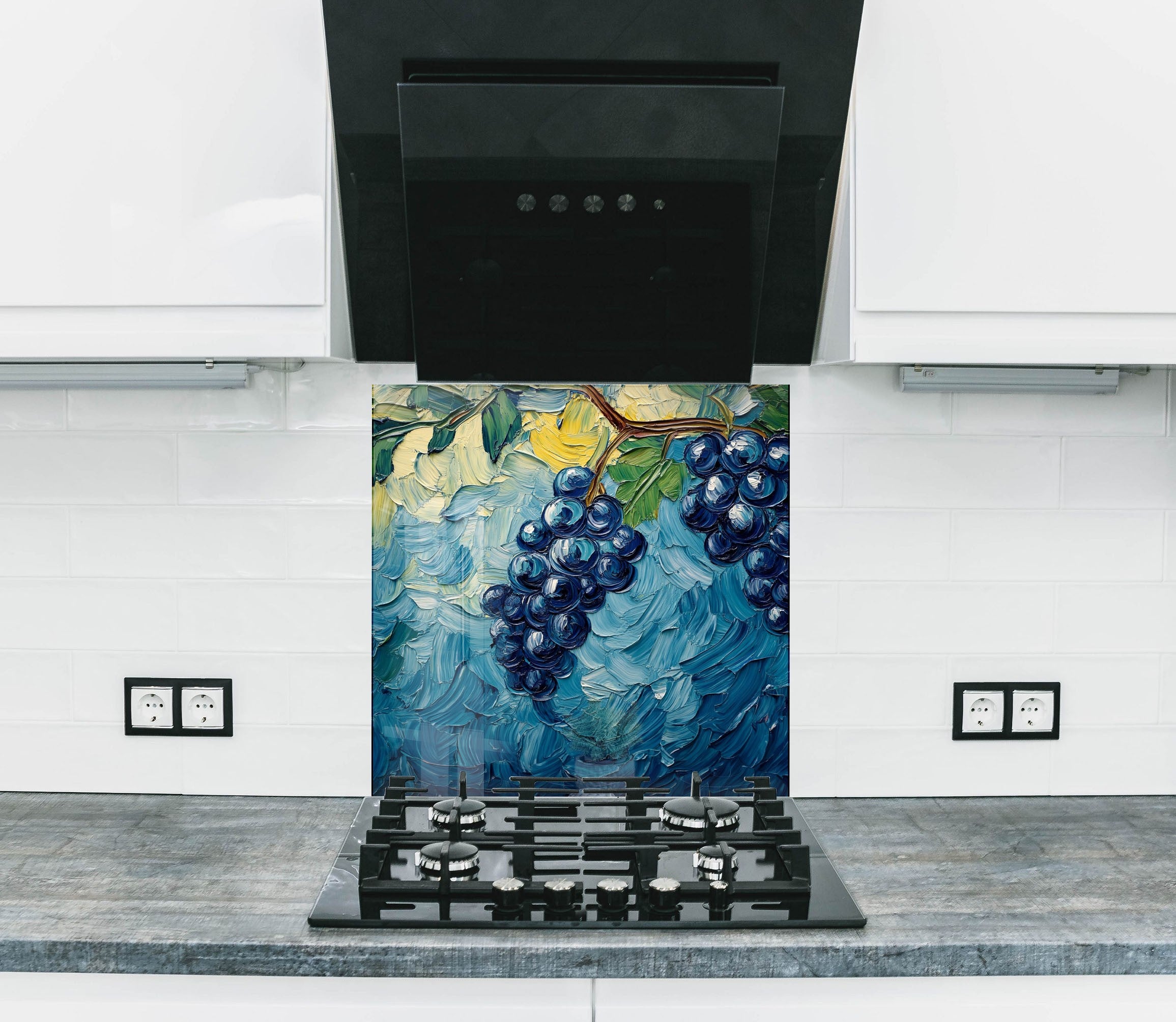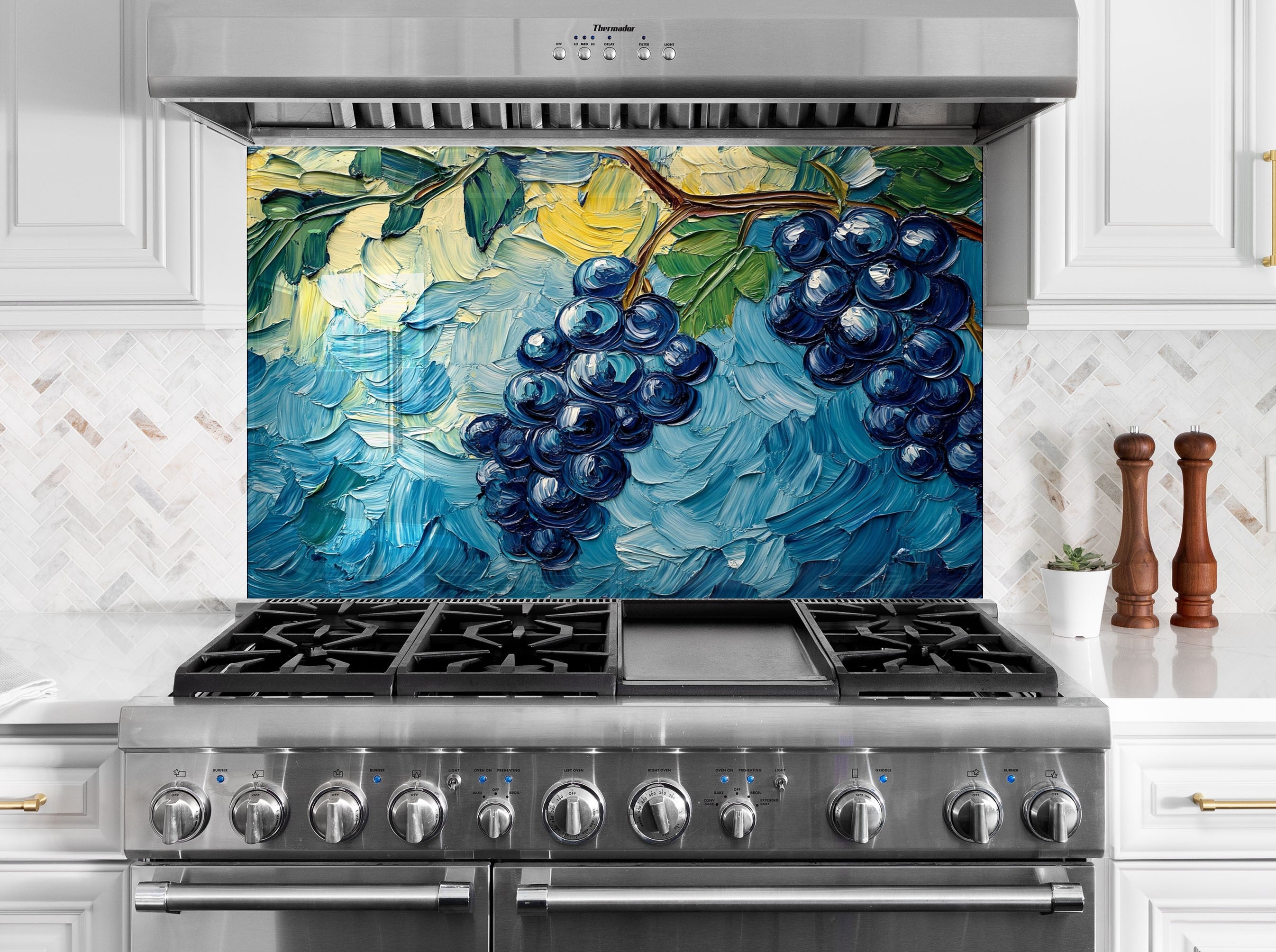 Vineyard Touch – Blue Grapes Impressionist Glass Kitchen Backsplash