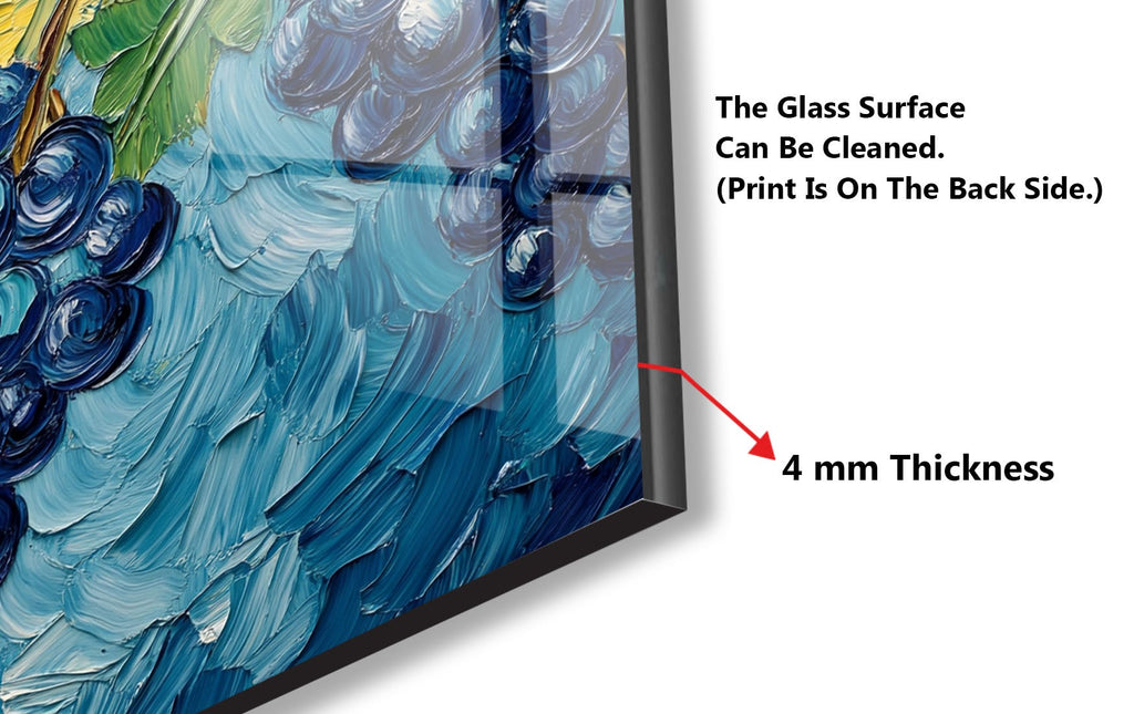 Bring a taste of the vineyard into your kitchen with the Vineyard Touch – Blue Grapes Impressionist Glass Kitchen Backsplash. This vibrant artwork features textured strokes of deep blue grapes set against swirling shades of green, turquoise, and golden yellow. Inspired by classic impressionist painting, this design creates a rustic and artistic focal point that enhances both modern and traditional kitchens.