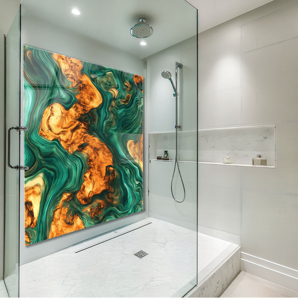 Infuse your kitchen with natural richness and bold artistry through the Emerald Copper Fusion – Earthy Abstract Elegance Glass Kitchen Backsplash. Featuring deep emerald greens swirling with warm copper tones, this mesmerizing abstract design captures the raw, untamed beauty of the earth’s natural elements. Perfect for kitchens that seek dramatic sophistication and nature-inspired luxury.