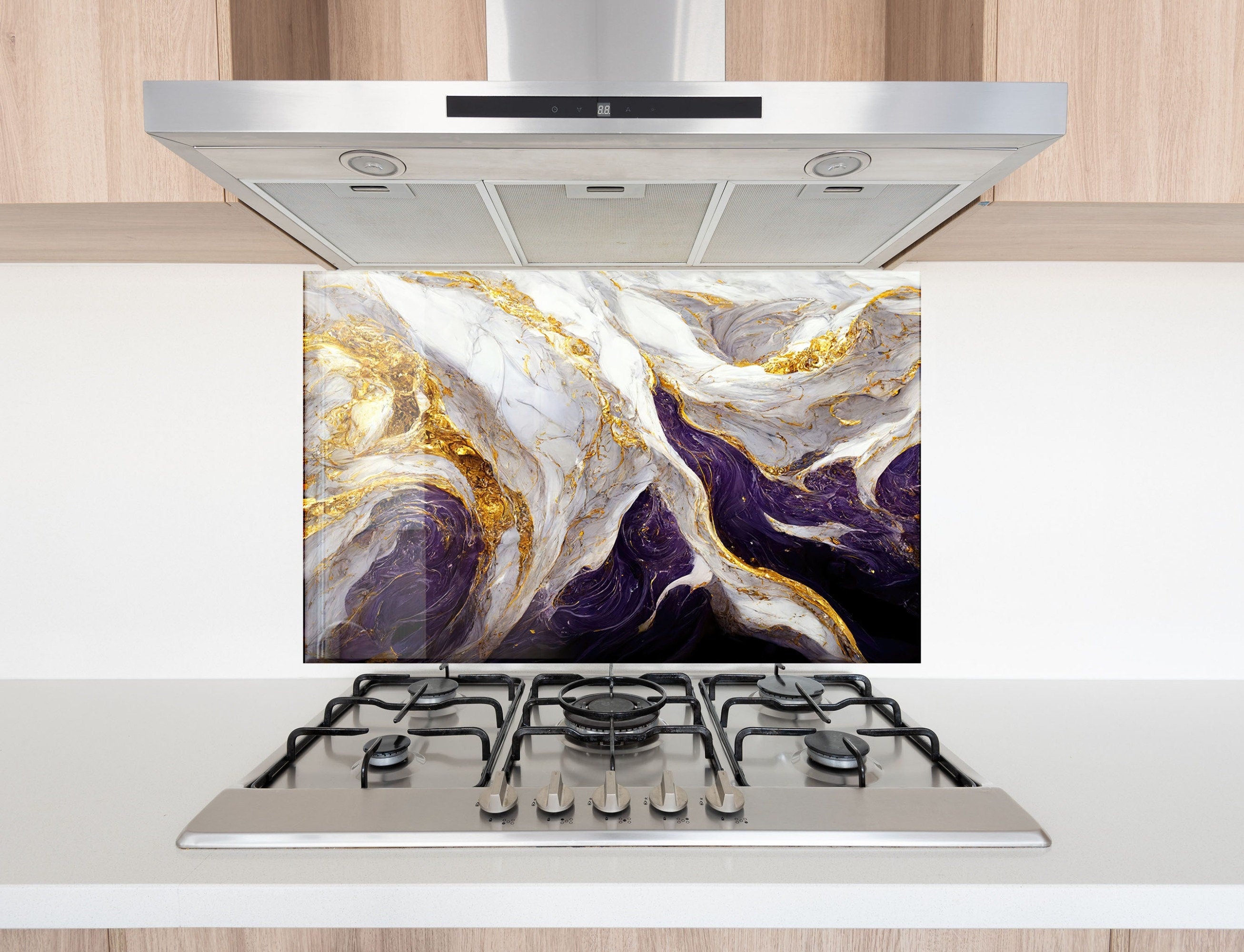 Purple & Gold Marble Waves - Glass Kitchen Backsplash