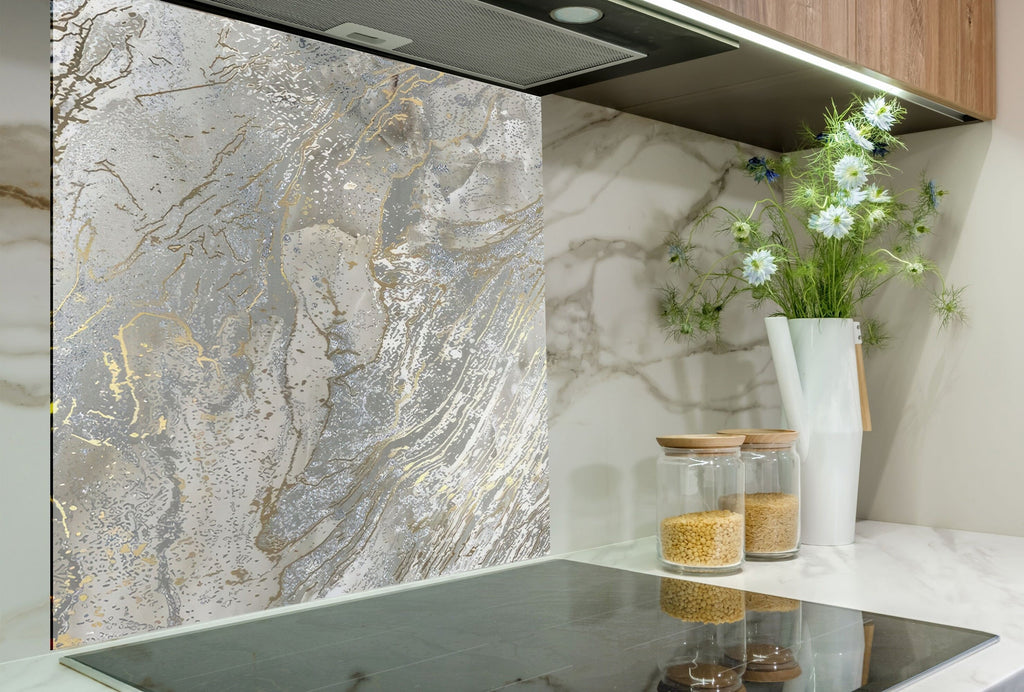 Silver & Gold Marble Veins - Glass Kitchen Backsplash