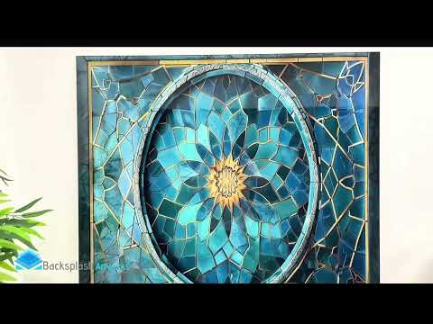 Elevate your kitchen with the Celestial Bloom Glass Kitchen Backsplash, a stunning fusion of intricate mandala patterns and celestial elegance. This design features deep sapphire blues, shimmering gold accents, and delicate geometric detailing, creating a breathtaking focal point.