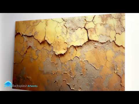 Transform your kitchen into a sophisticated, artistic space with this Golden Patina Abstract Glass Kitchen Backsplash. The stunning design features metallic gold and silver tones, intricate peeling textures, and a rustic, distressed look, giving it a modern yet vintage feel. This eye-catching backsplash is perfect for those looking to add a luxurious, artistic statement to their space while keeping the atmosphere elegant and contemporary.