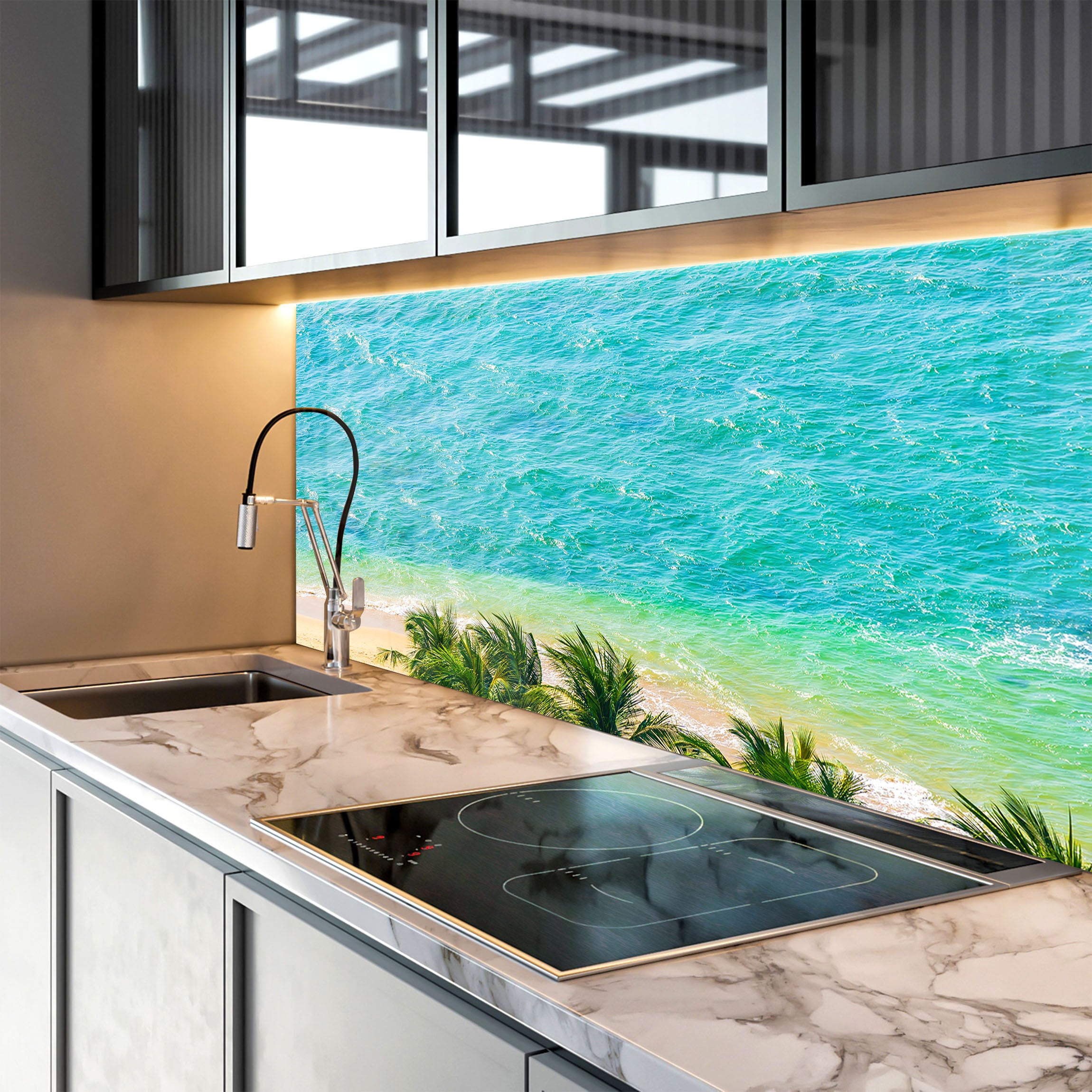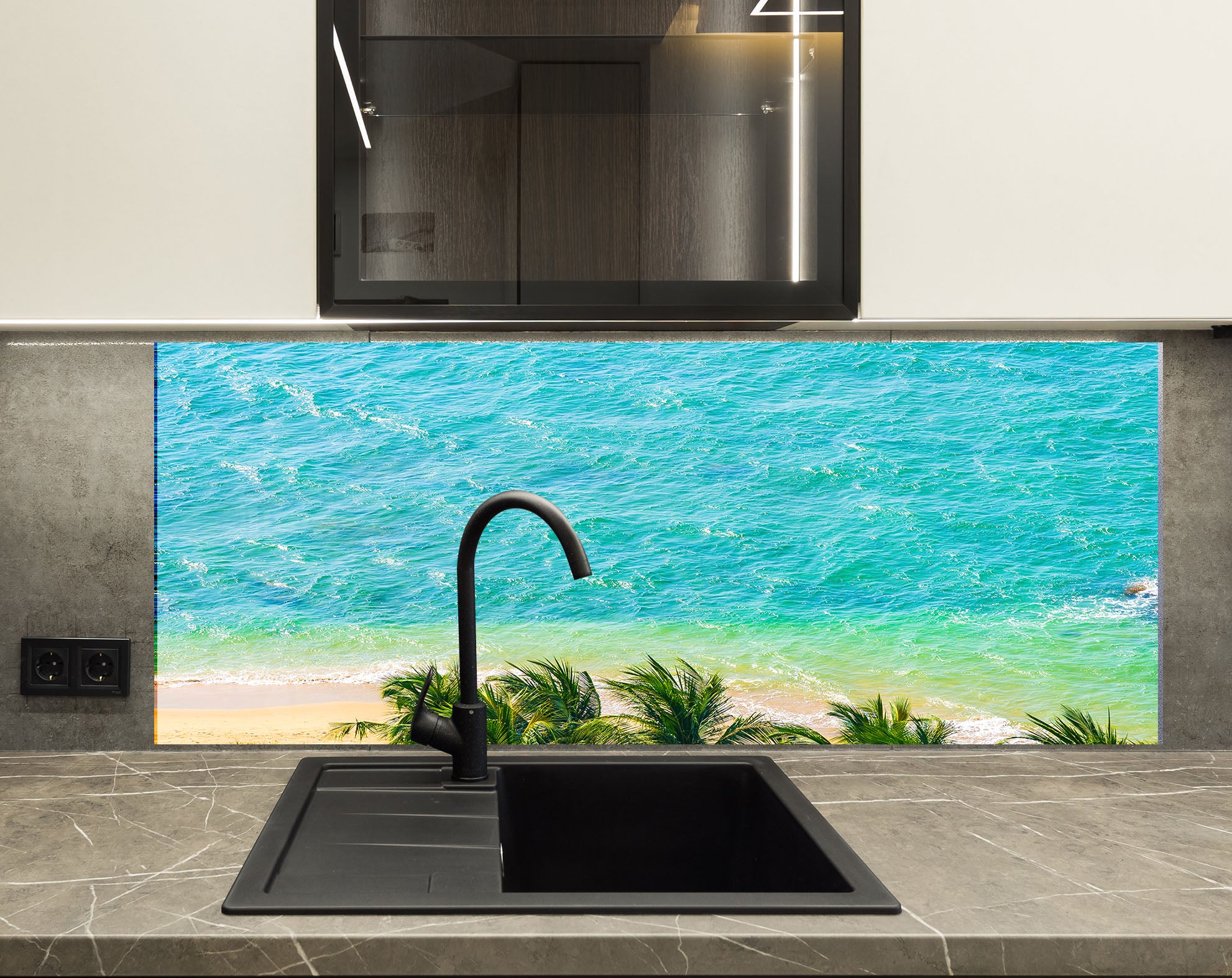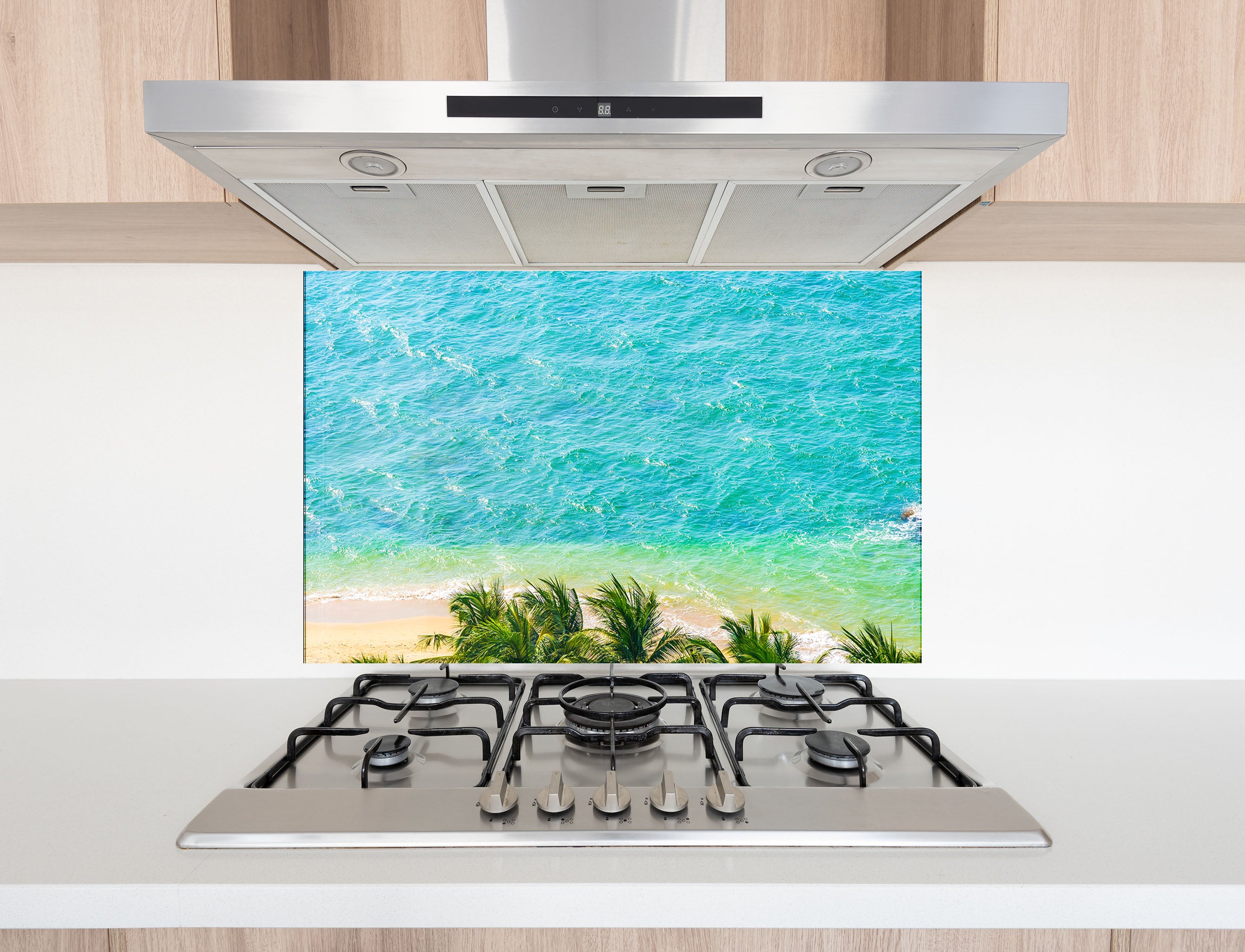 Aerial Tropical Ocean View Wall Art – Tempered Glass Kitchen Backsplash