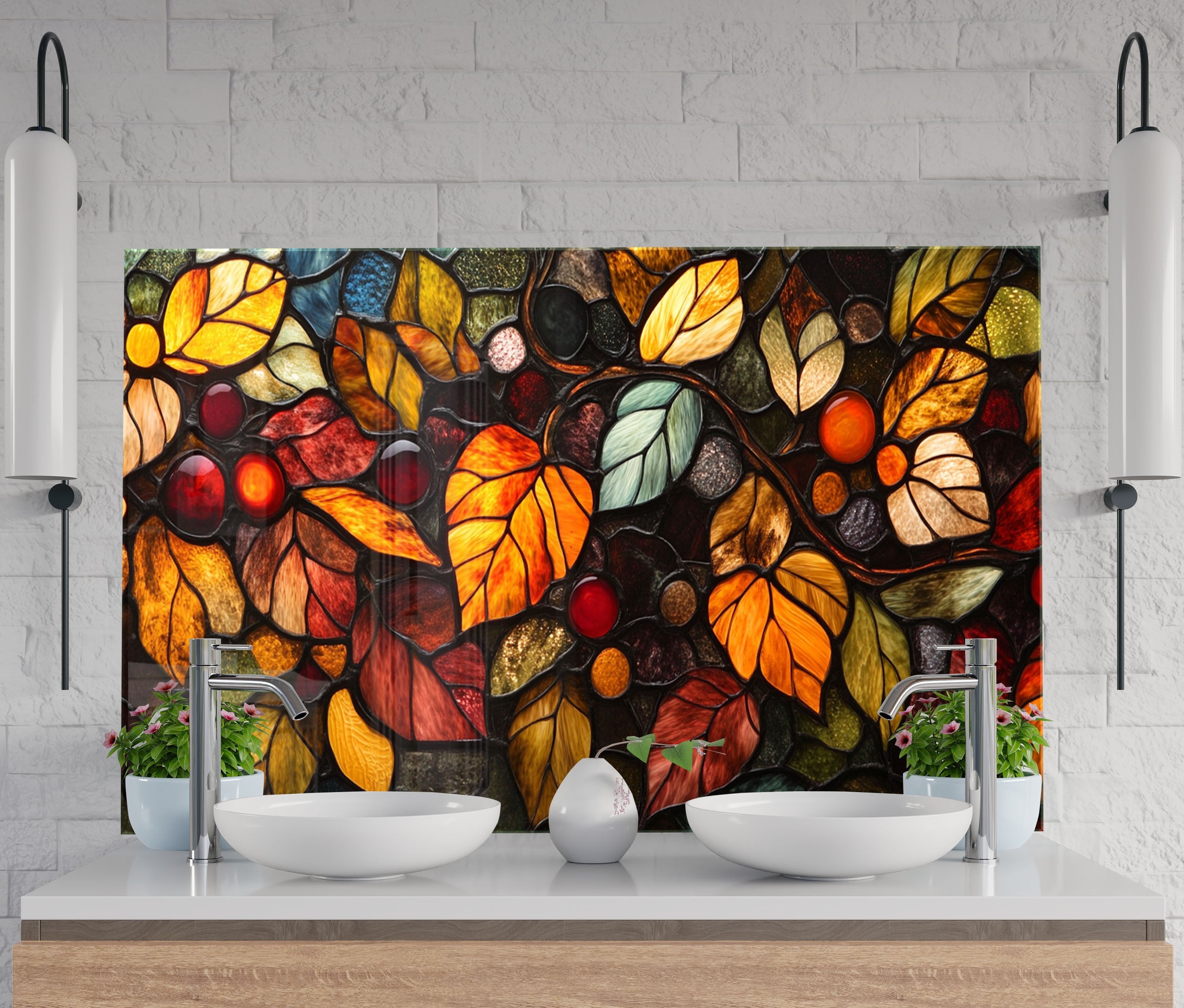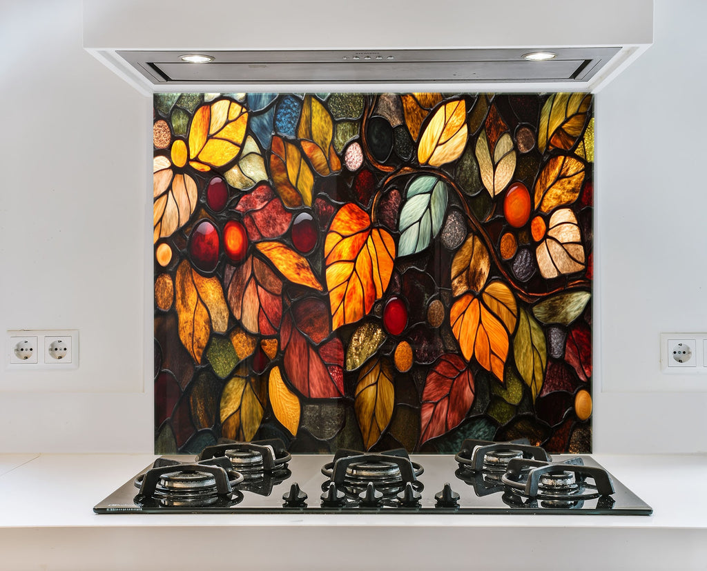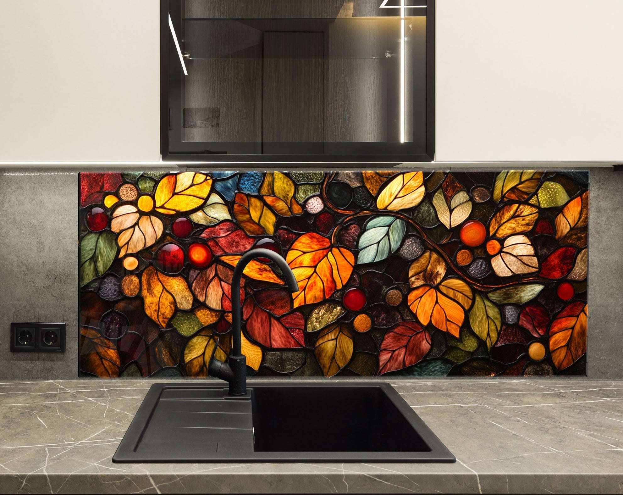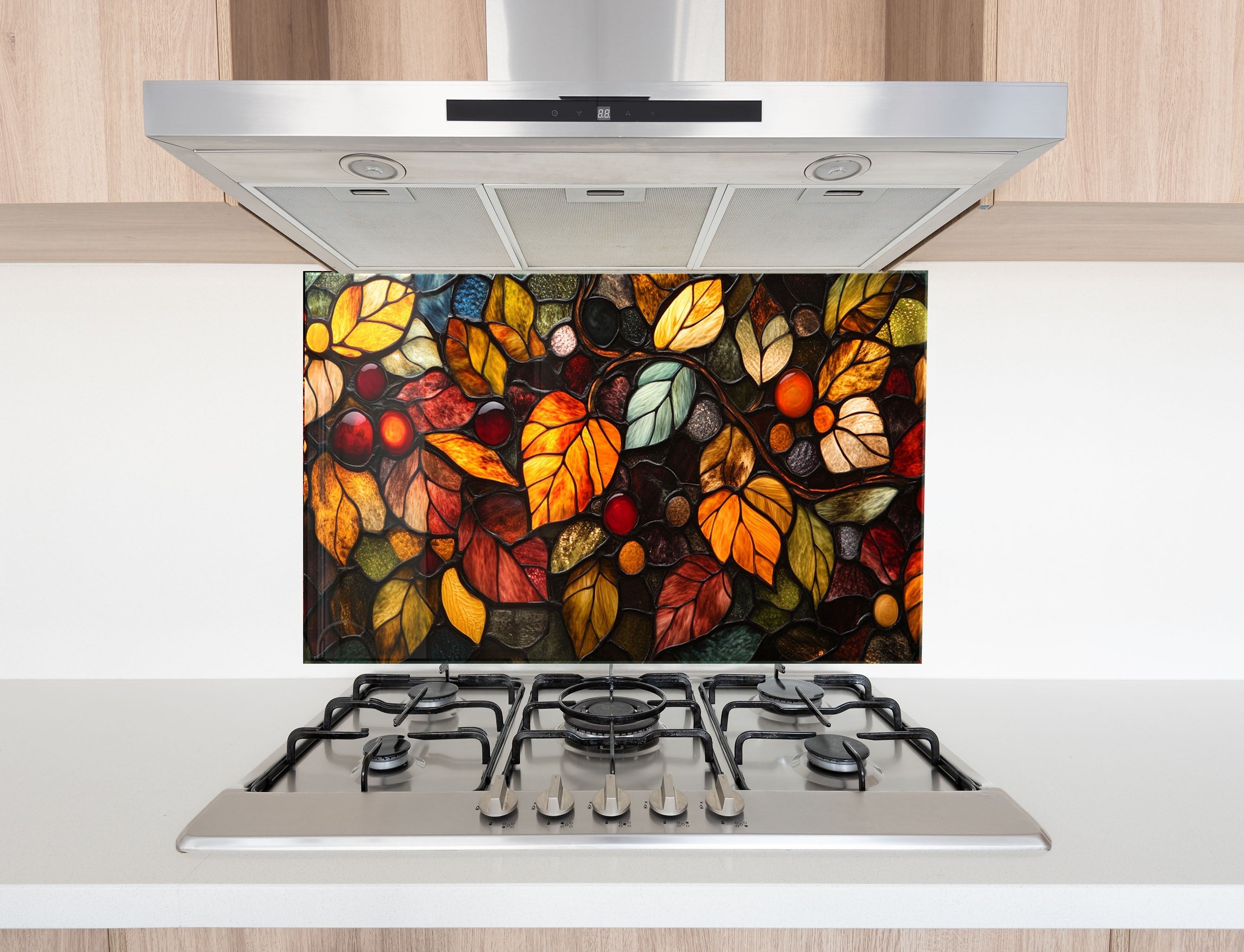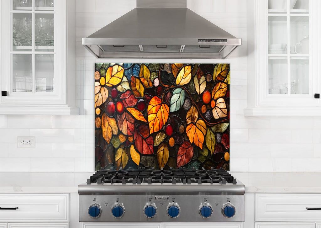 Autumn Harmony – Colorful Leaves Glass Kitchen Backsplash