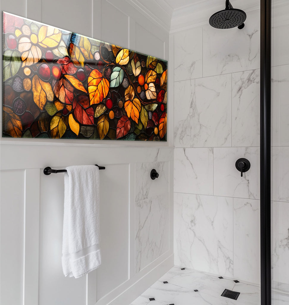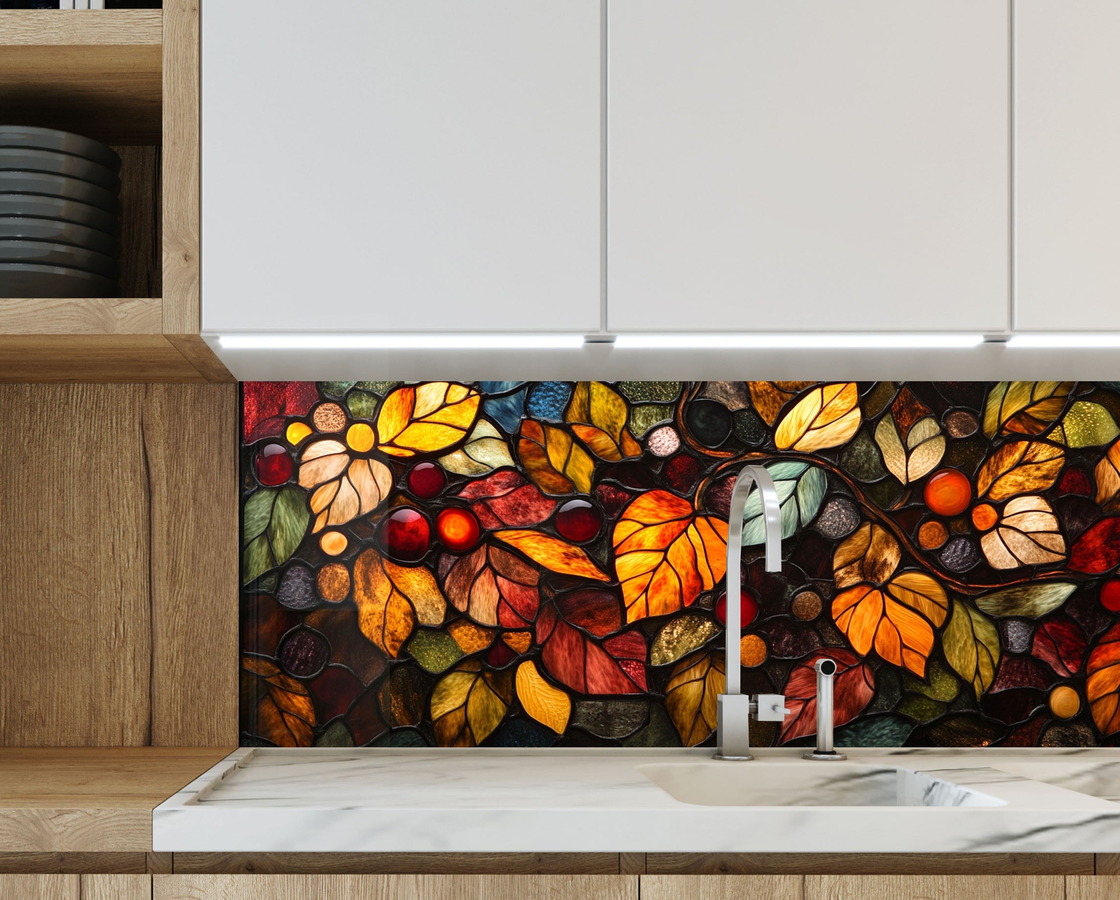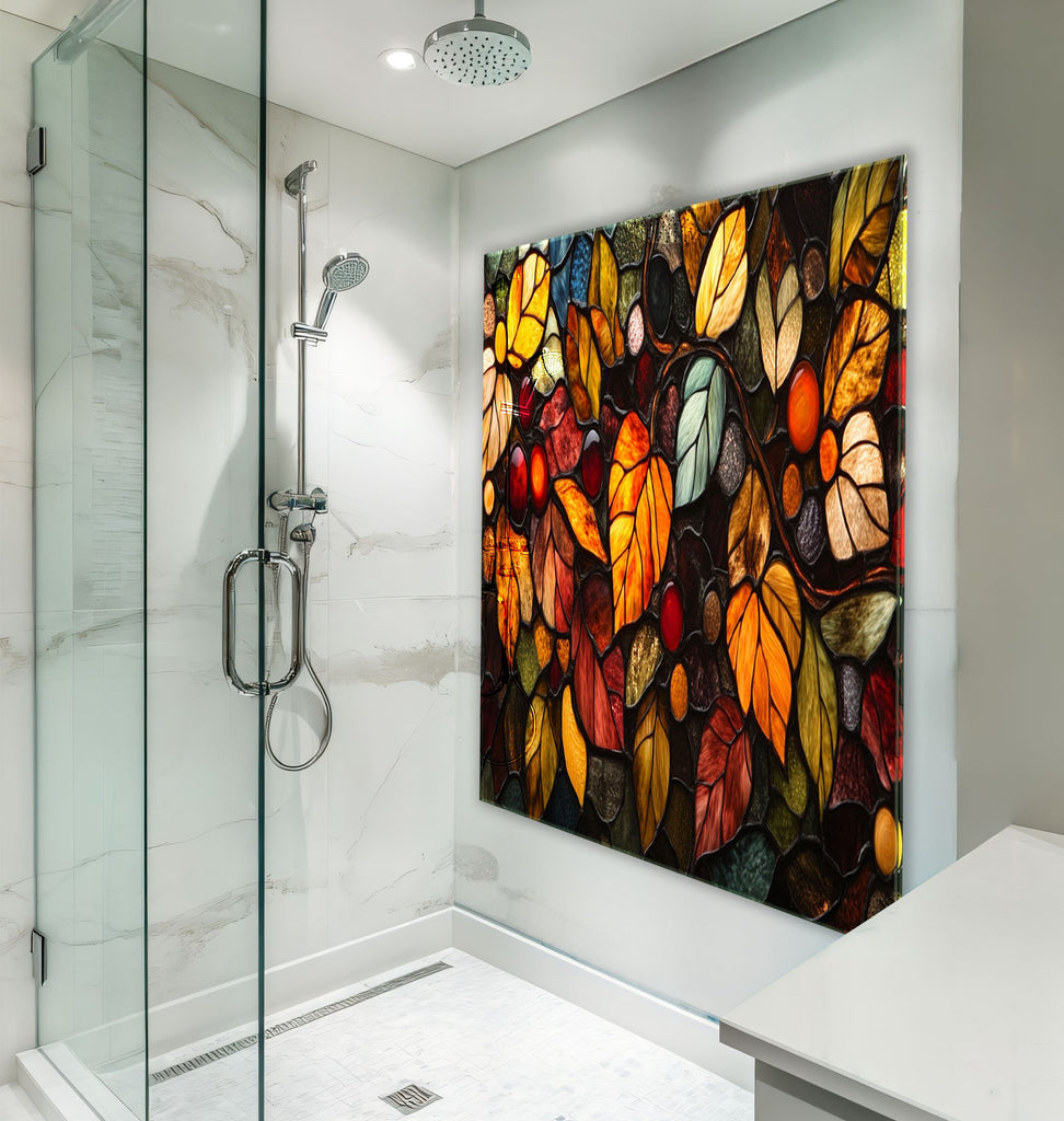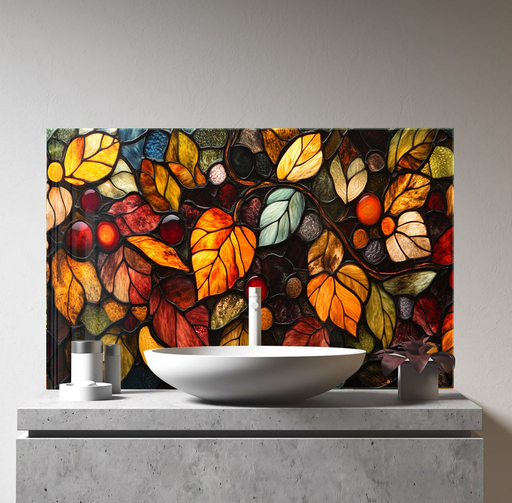 Autumn Harmony – Colorful Leaves Glass Kitchen Backsplash
