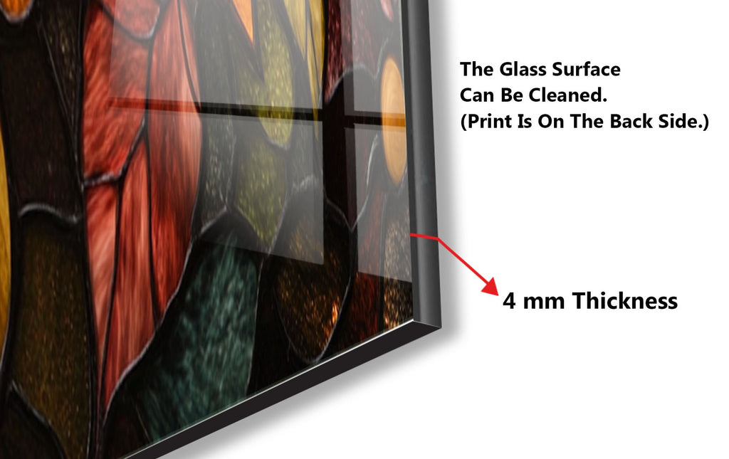 Celebrate the warmth and richness of nature with the Autumn Harmony Glass Kitchen Backsplash. This vivid design showcases a kaleidoscope of fall leaves and forest tones printed onto high-gloss tempered glass. With its deep reds, golden ambers, and lush greens, the artwork brings the energy of autumn indoors—without any physical texture or relief, making it easy to clean and ideal for modern kitchens.