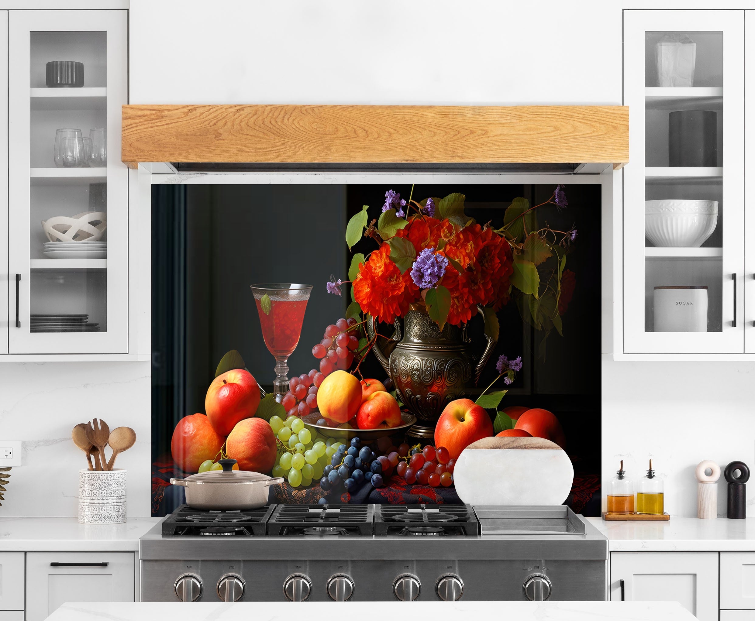 Bring the charm of a vintage harvest straight into your kitchen with this Elegant Fruit & Wine Glass Kitchen Backsplash – Vintage Harvest Design. This piece beautifully captures the essence of a fruitful bounty, combining ripe fruits, rich wine tones, and classic design elements. Whether you’re hosting a gathering or simply enjoying a quiet meal, this backsplash adds an elegant touch that will enhance your cooking space.
