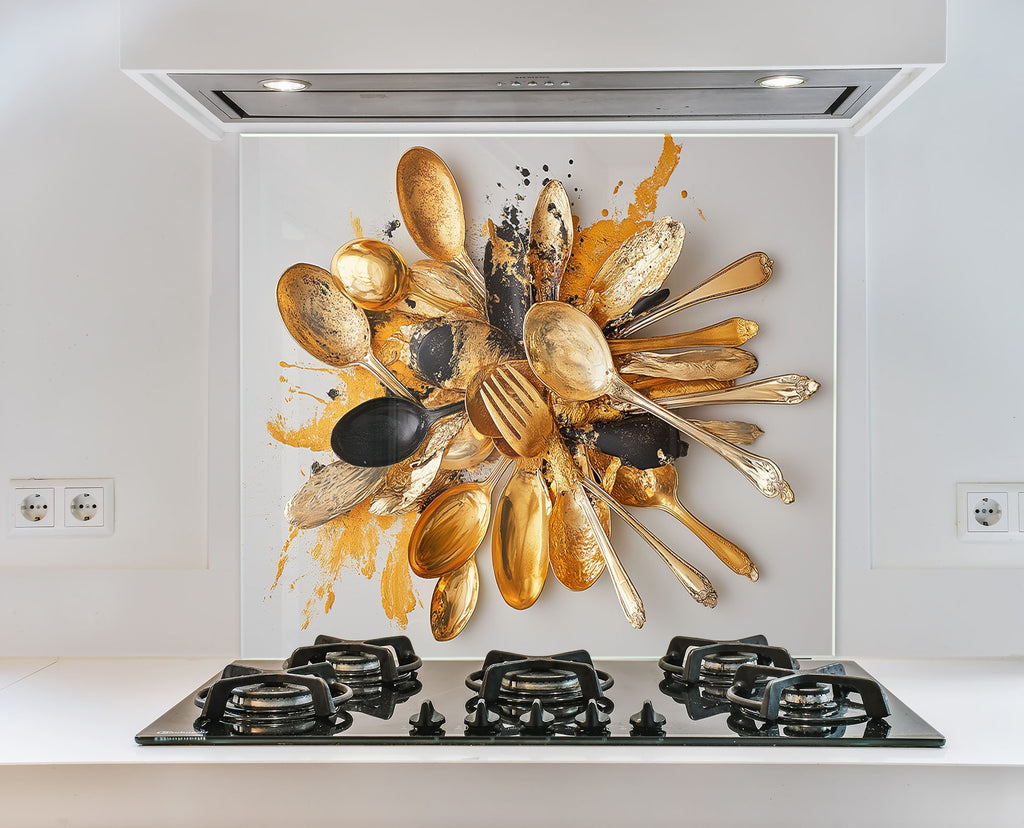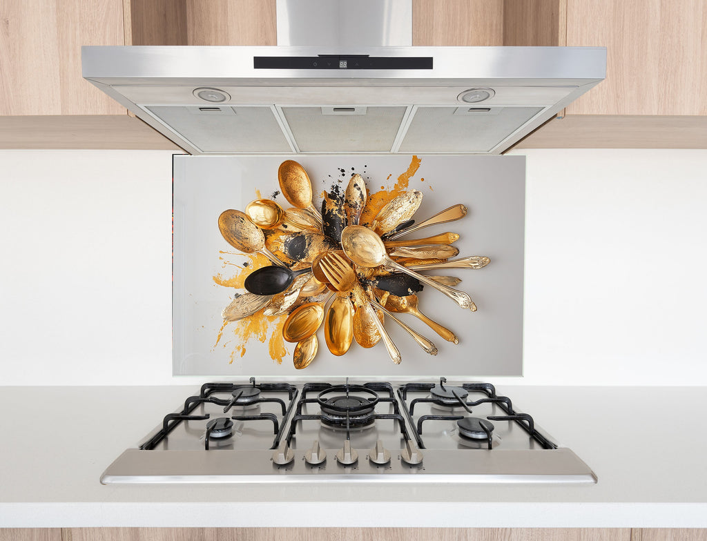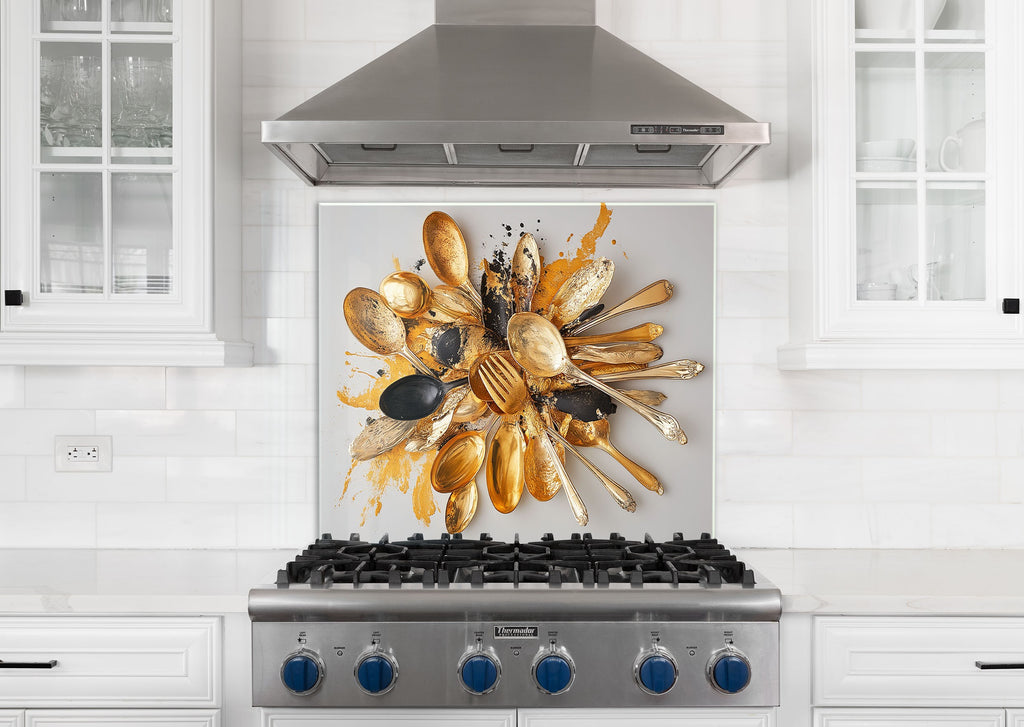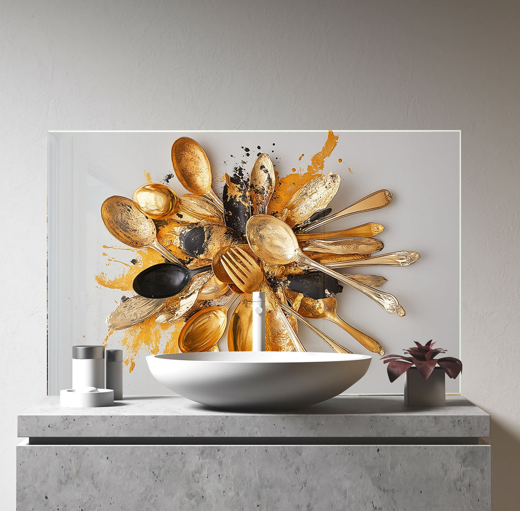 Golden Chaos – Abstract Cutlery Art Glass Kitchen Backsplash