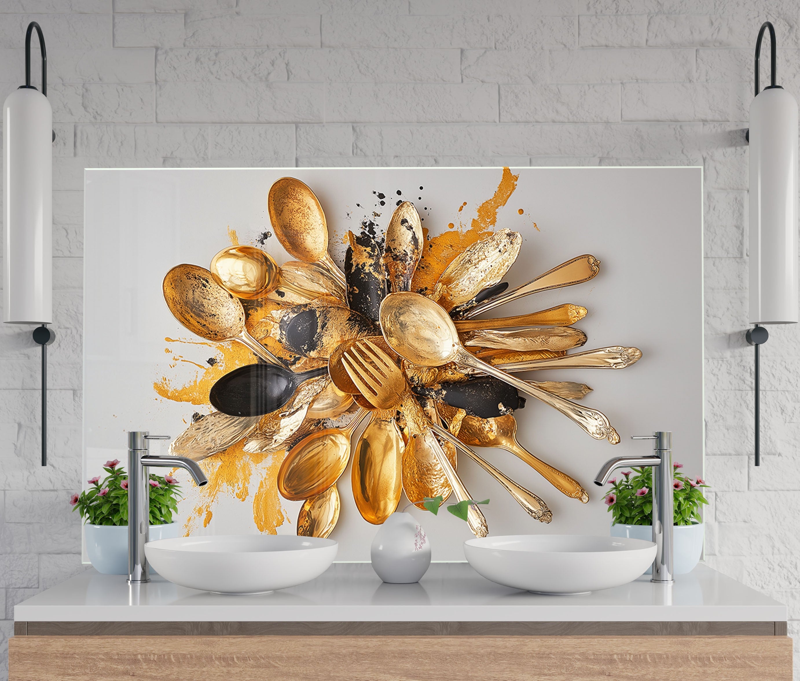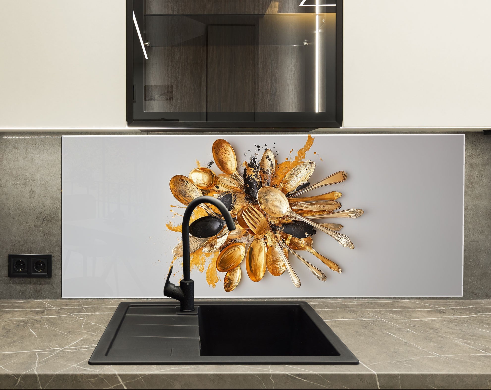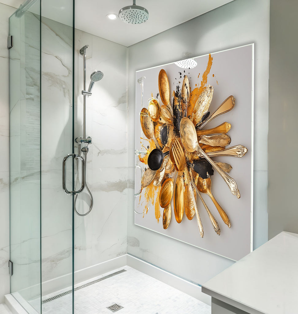 Golden Chaos – Abstract Cutlery Art Glass Kitchen Backsplash