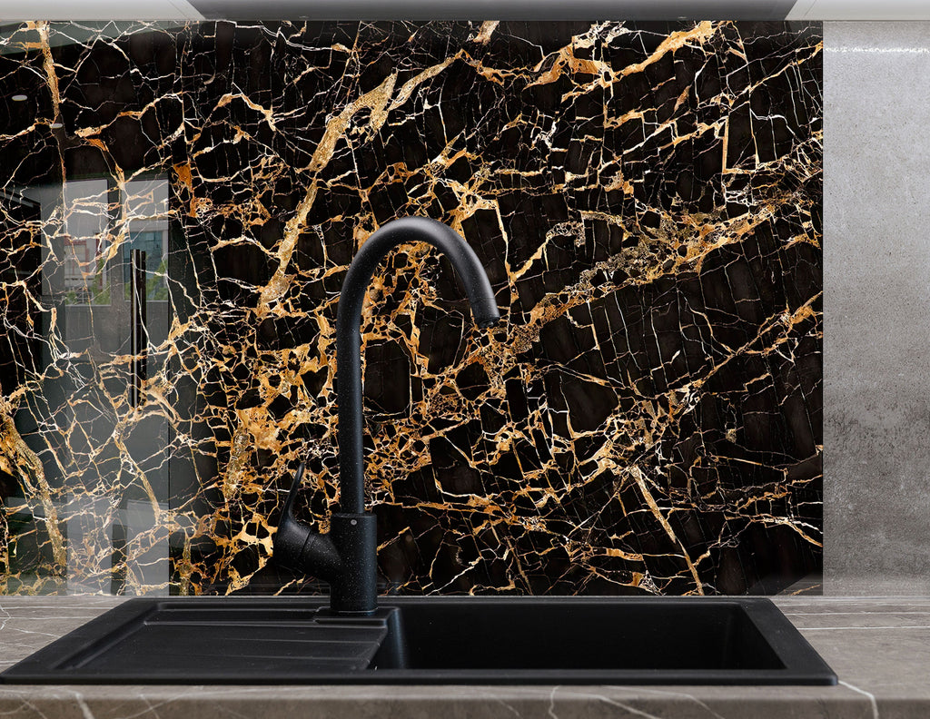 Luxurious Black Marble with Gold Veining - Glass Kitchen Backsplash