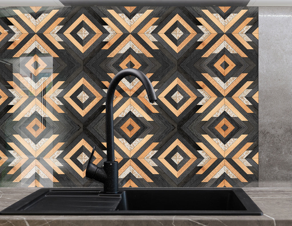 Modern Geometric Wood Design - Glass Kitchen Backsplash