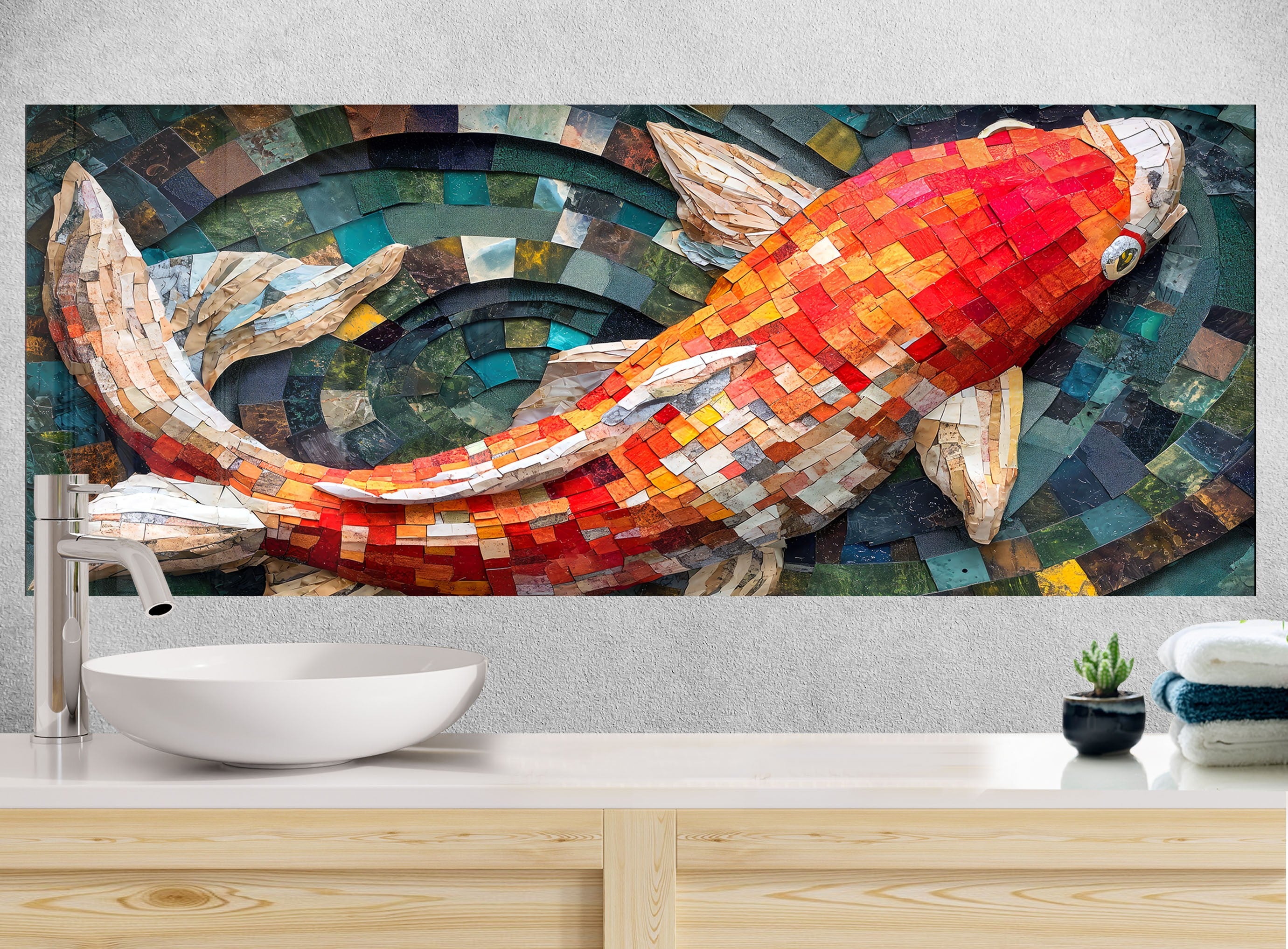 Add a touch of tranquility to your kitchen with the Mosaic-Inspired Tempered Glass Kitchen Backsplash with Koi Fish Design. This stunning backsplash features an intricate mosaic design of a koi fish, bringing color, elegance, and a sense of calm to your cooking space. Made from high-quality tempered glass, it is not only beautiful but also durable, easy to clean, and resistant to heat and stains. Whether you're updating your kitchen or starting fresh, this backsplash will enhance your space with its vibrant design and functional durability.