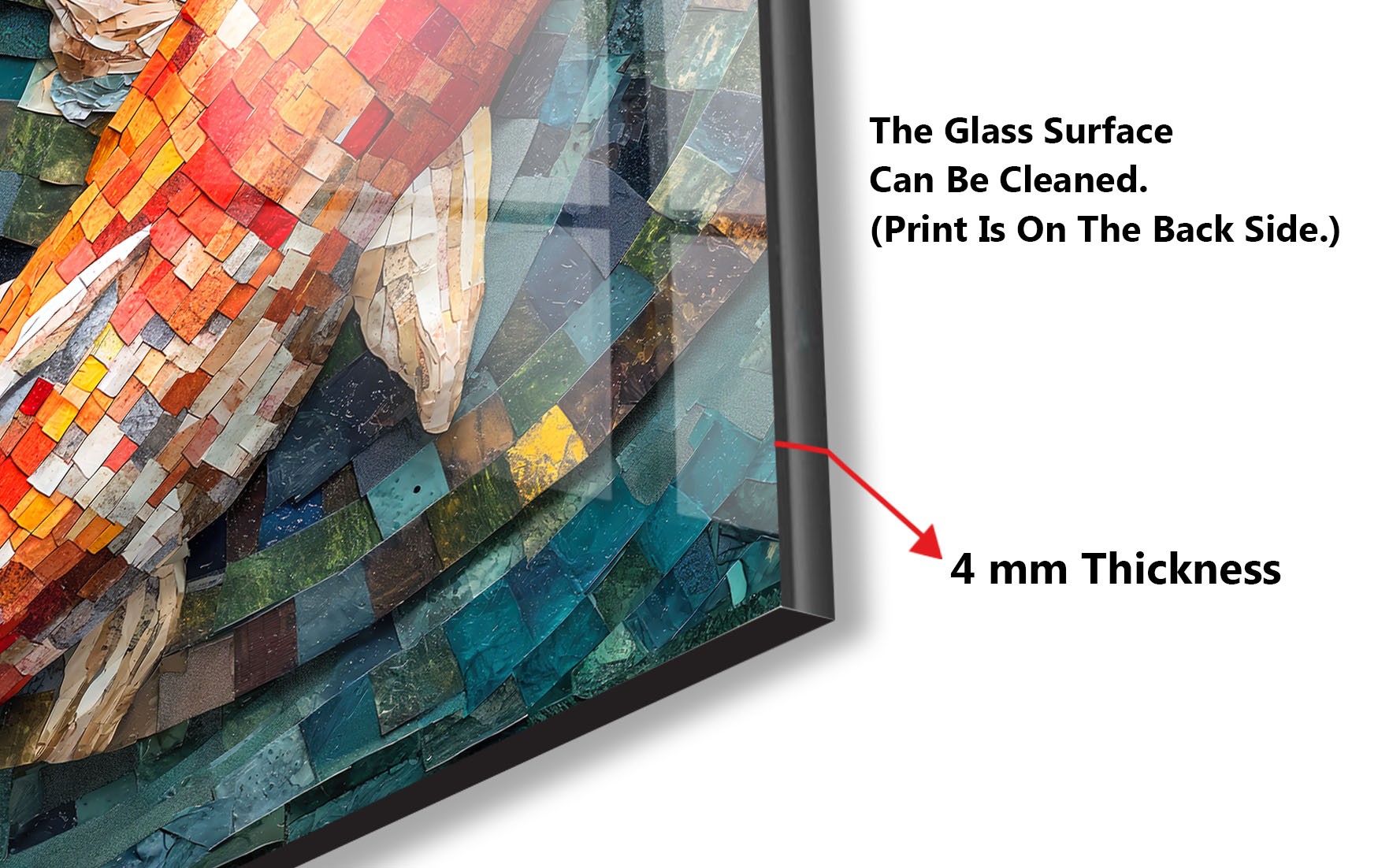 This product description emphasizes the beauty and durability of the Mosaic-Inspired Tempered Glass Kitchen Backsplash with Koi Fish Design, focusing on both its aesthetic appeal and practical features.