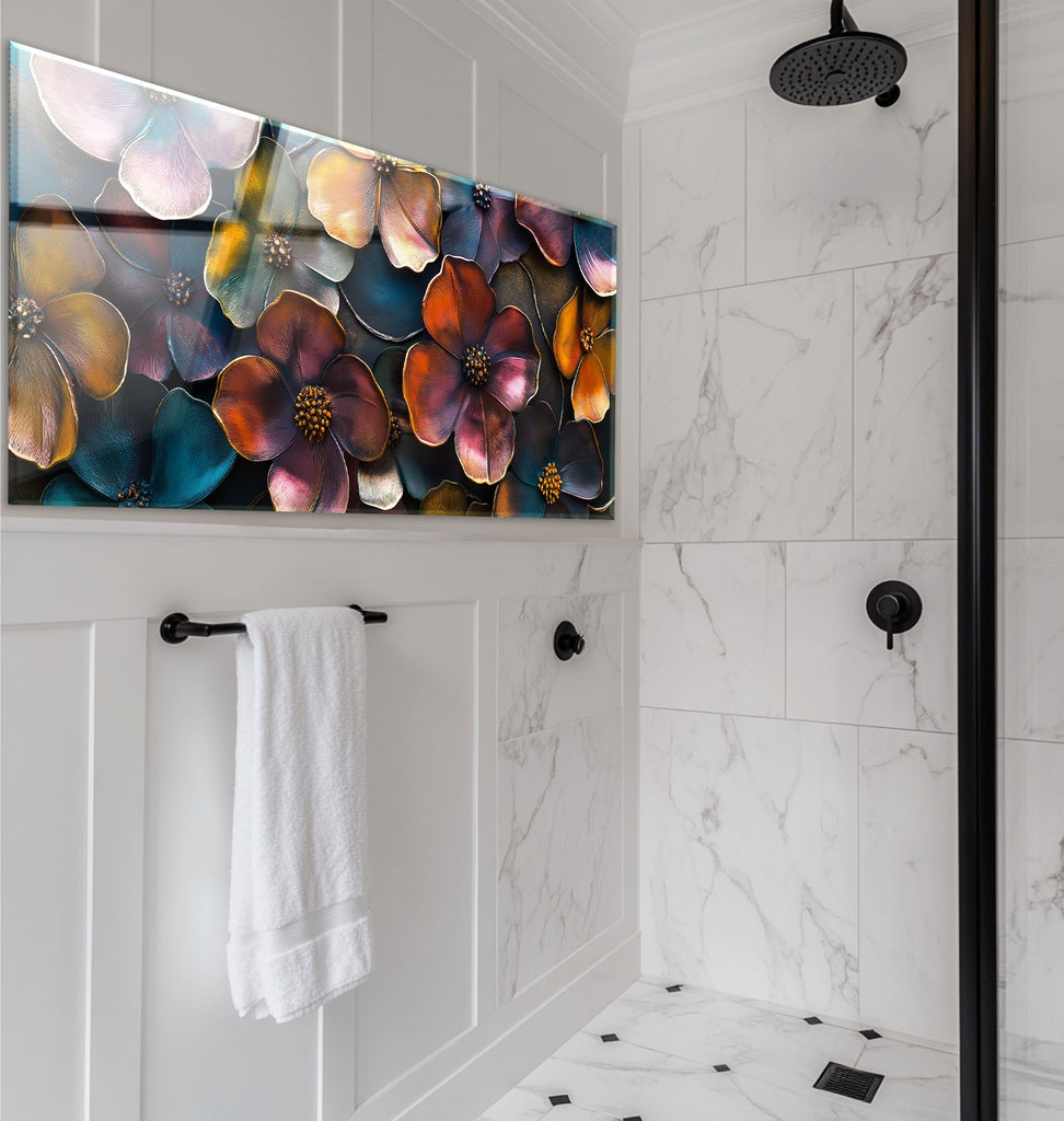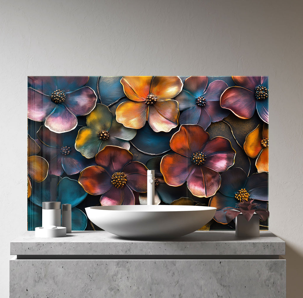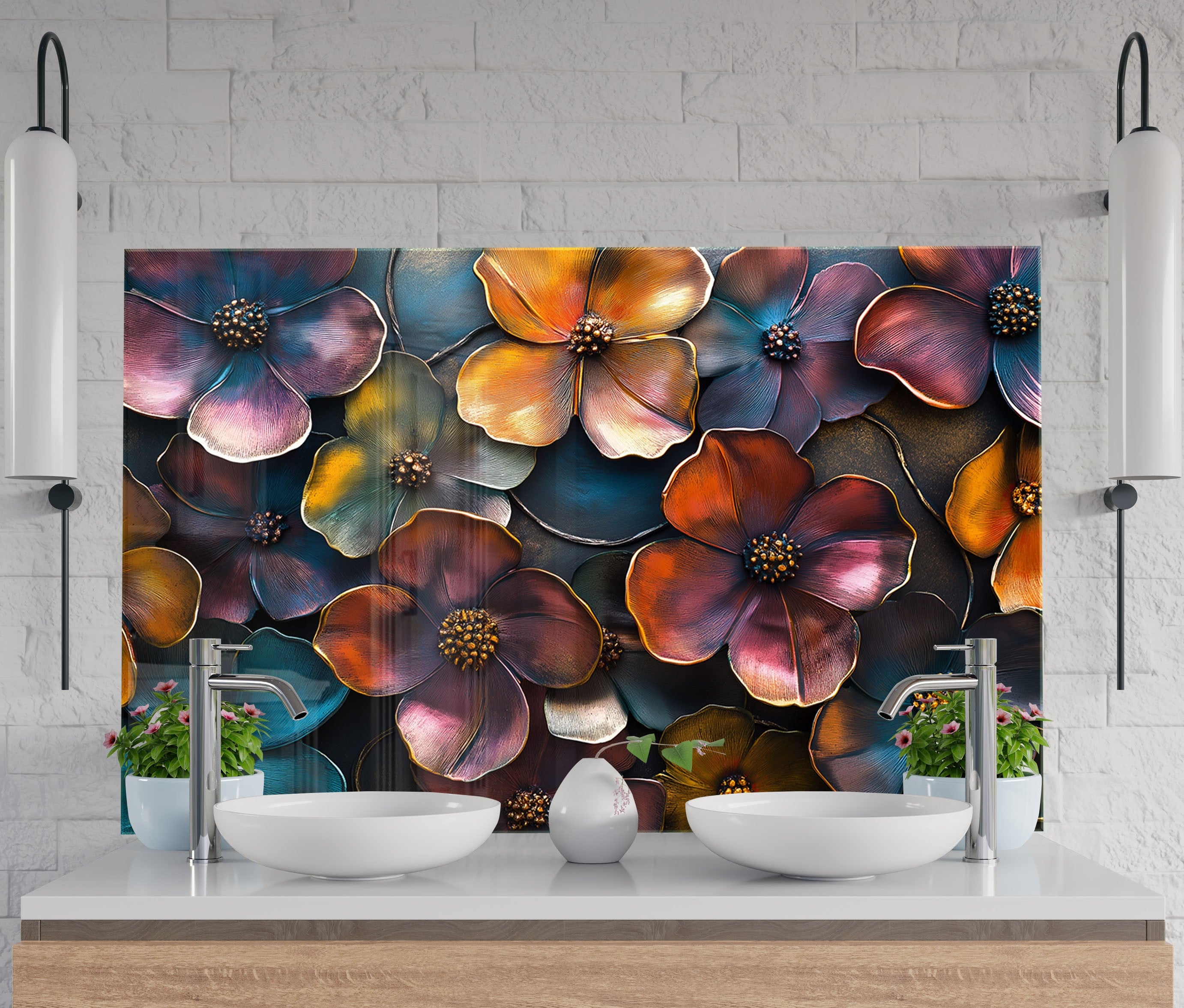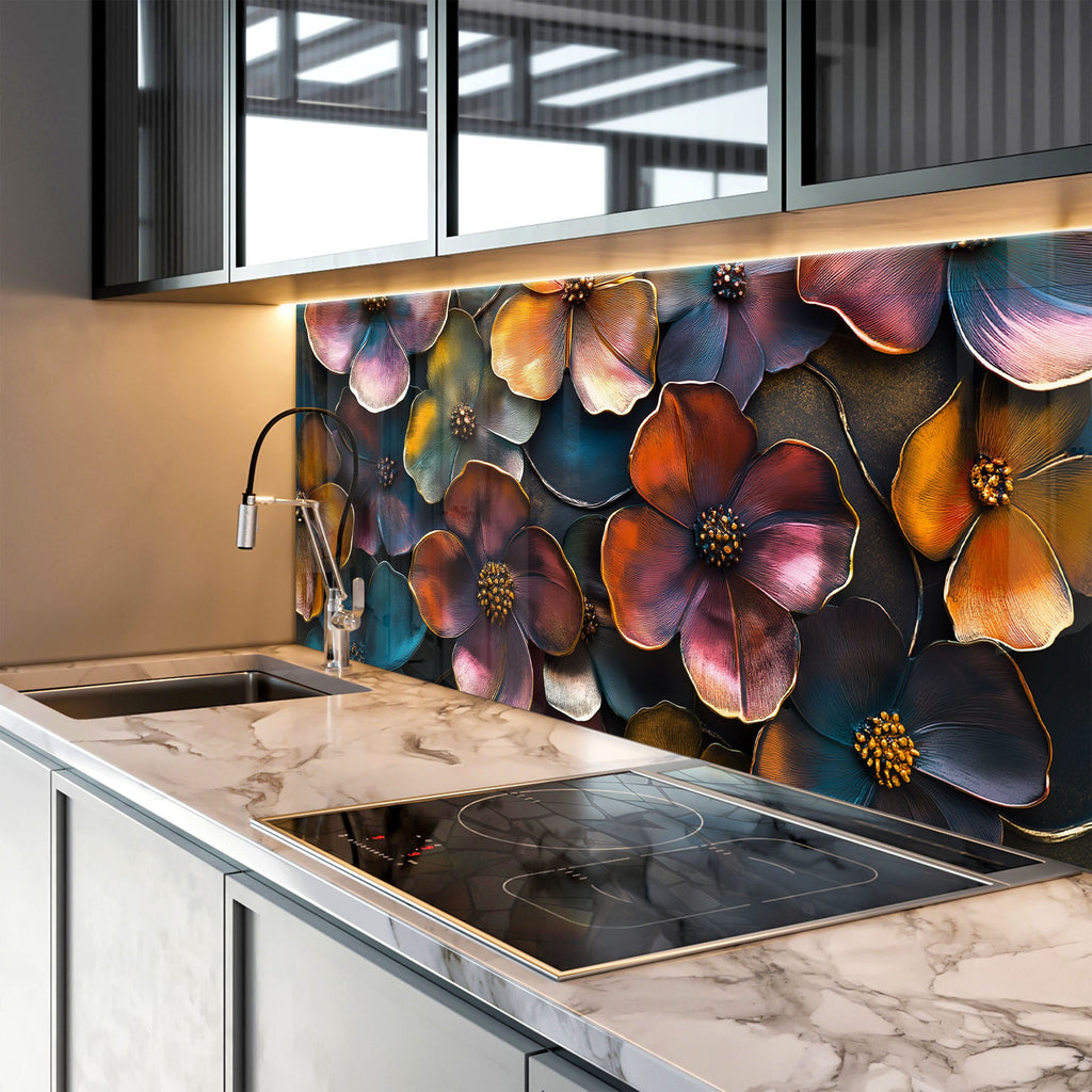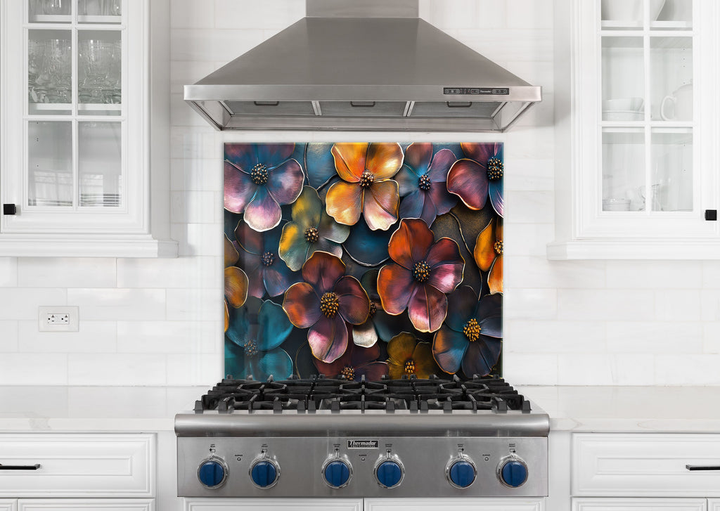 Multicolor Floral Elegance – Glass Kitchen Backsplash