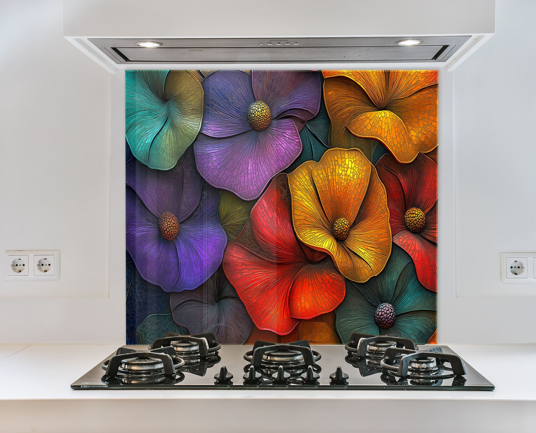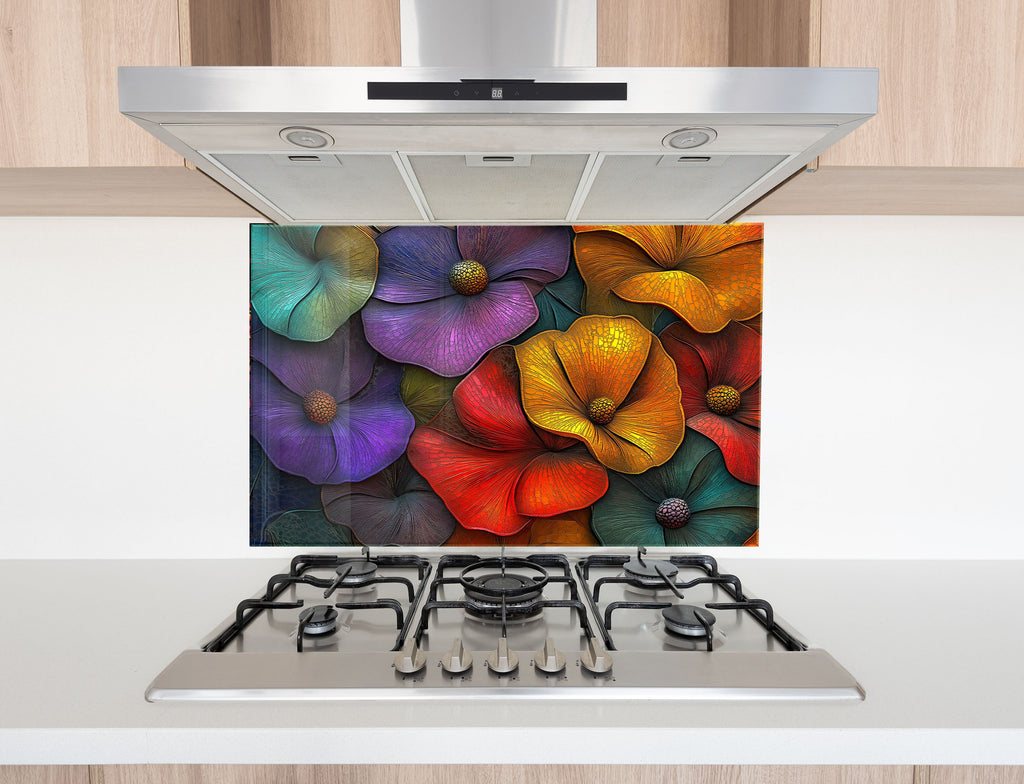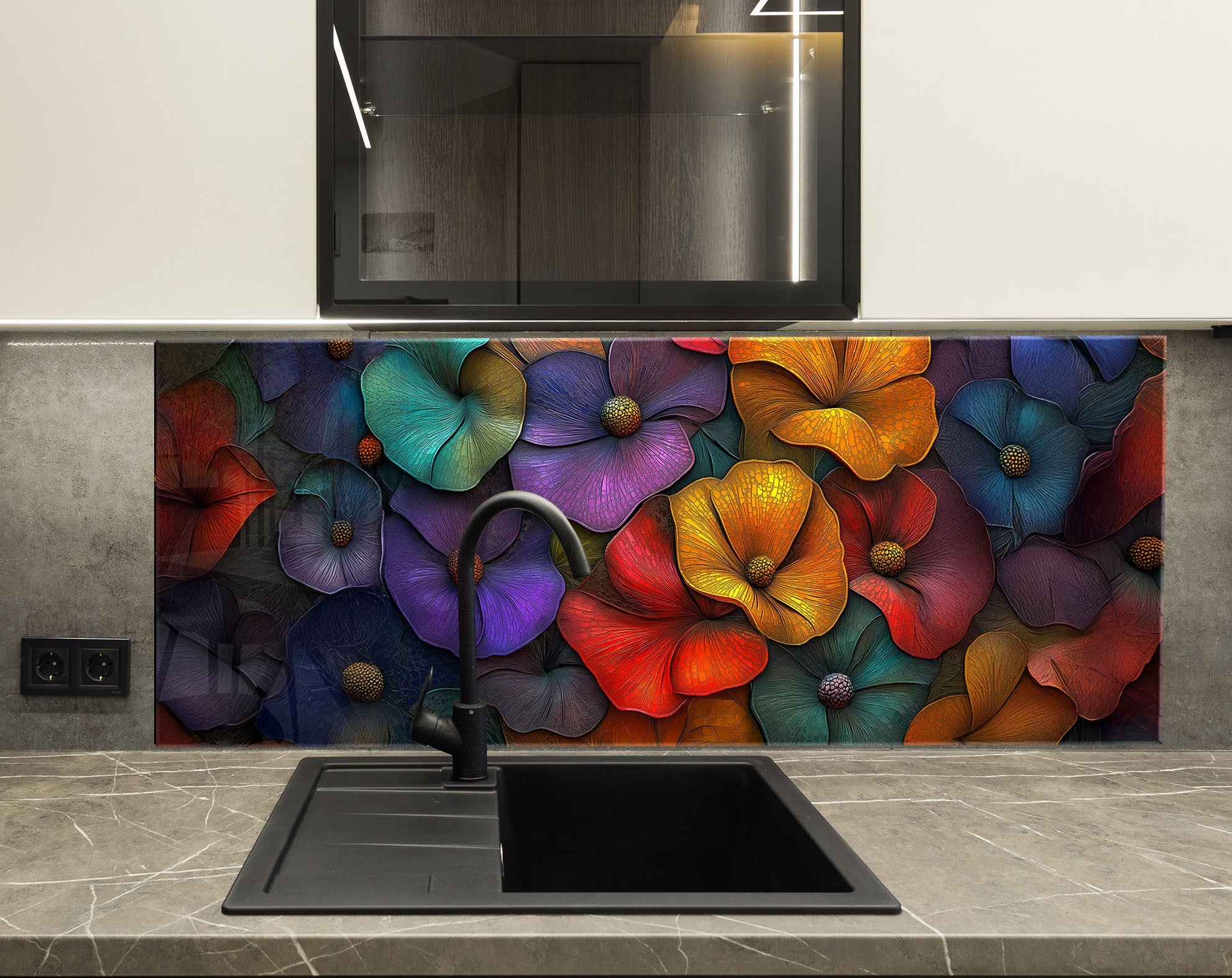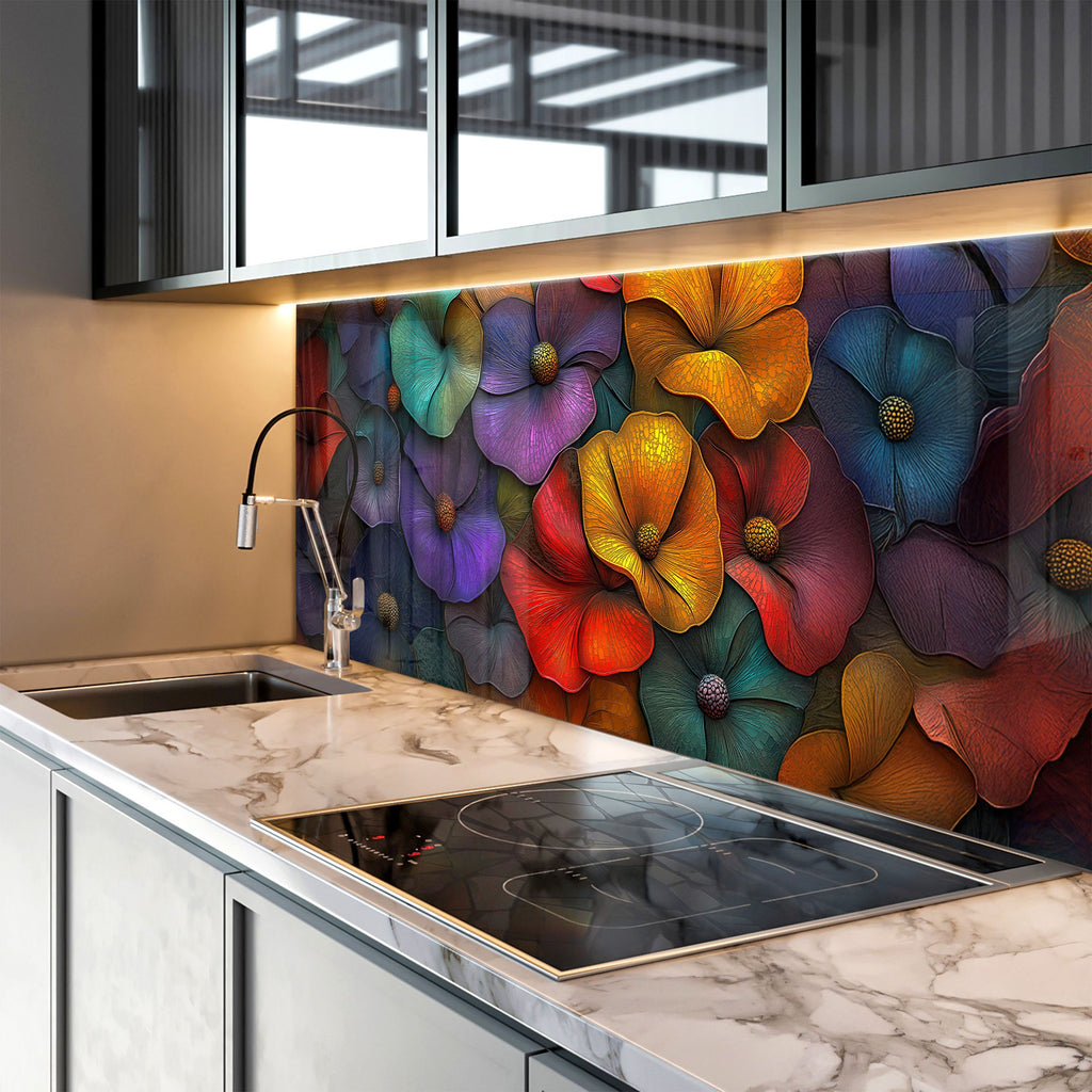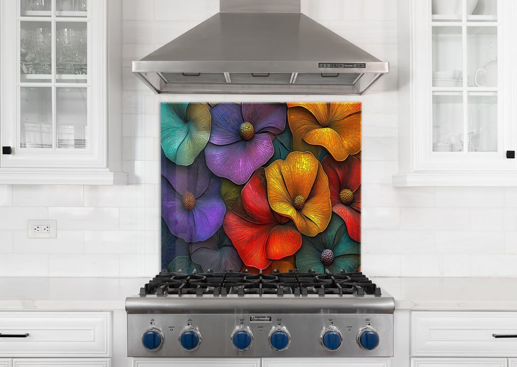 Radiant Bloom – Multicolor Floral Glass Kitchen Backsplash