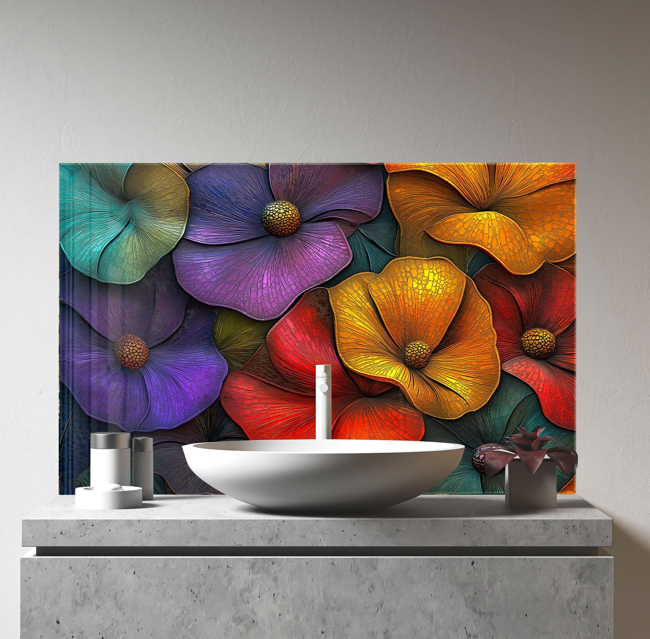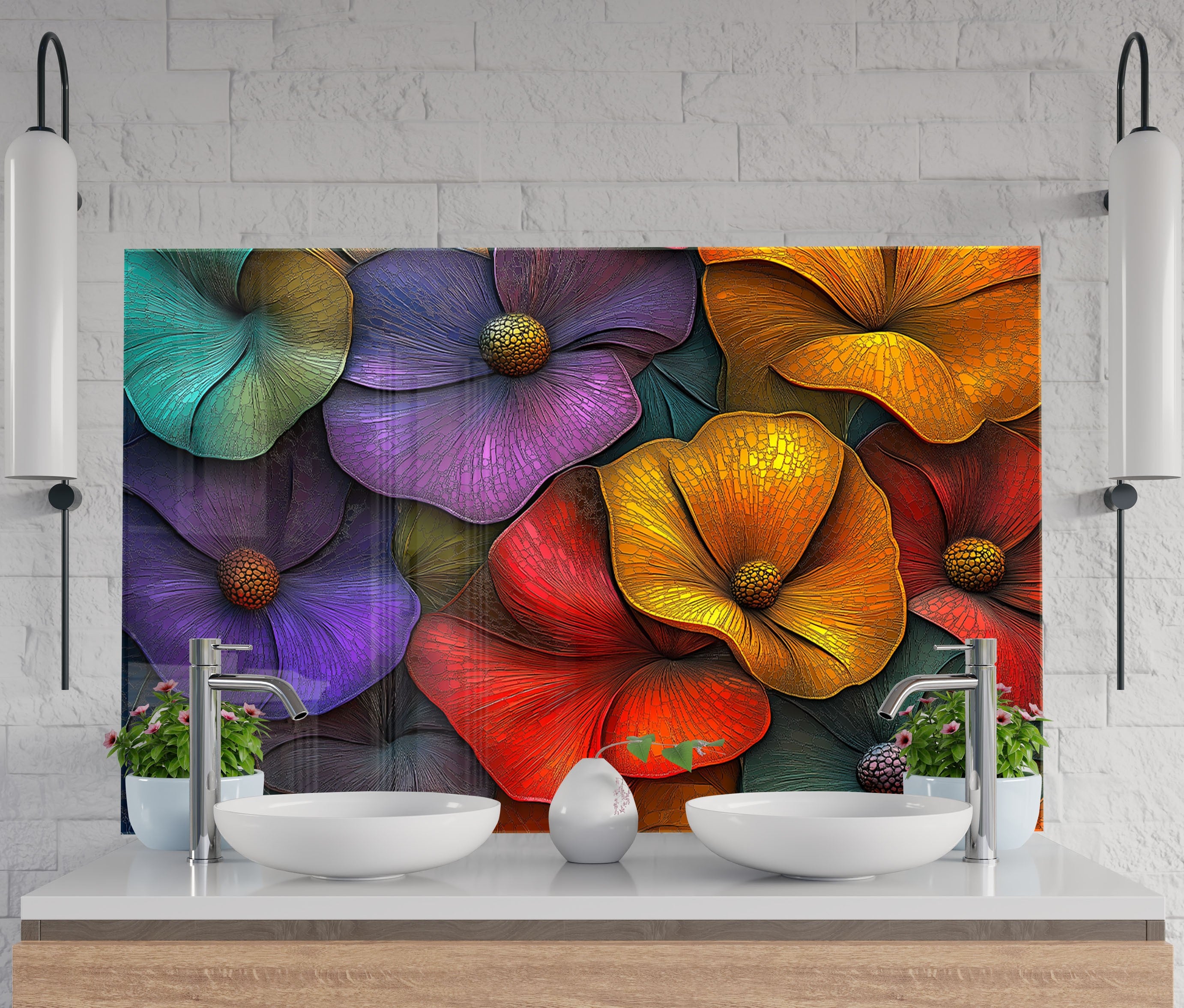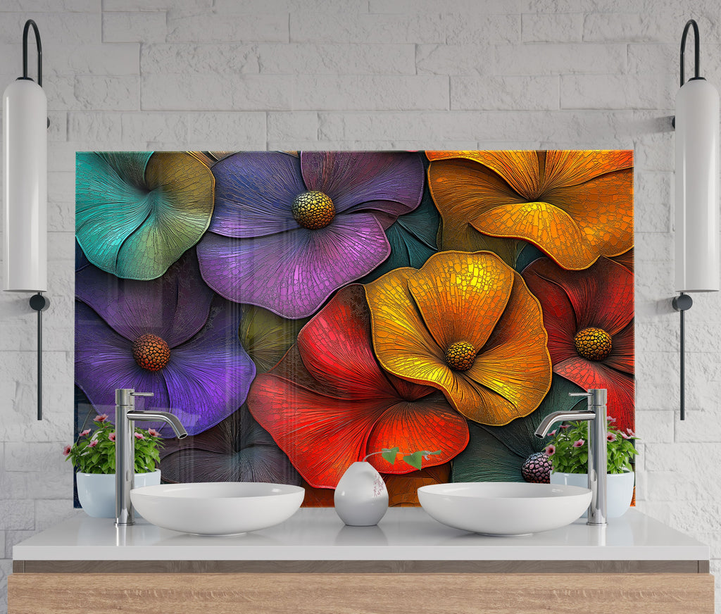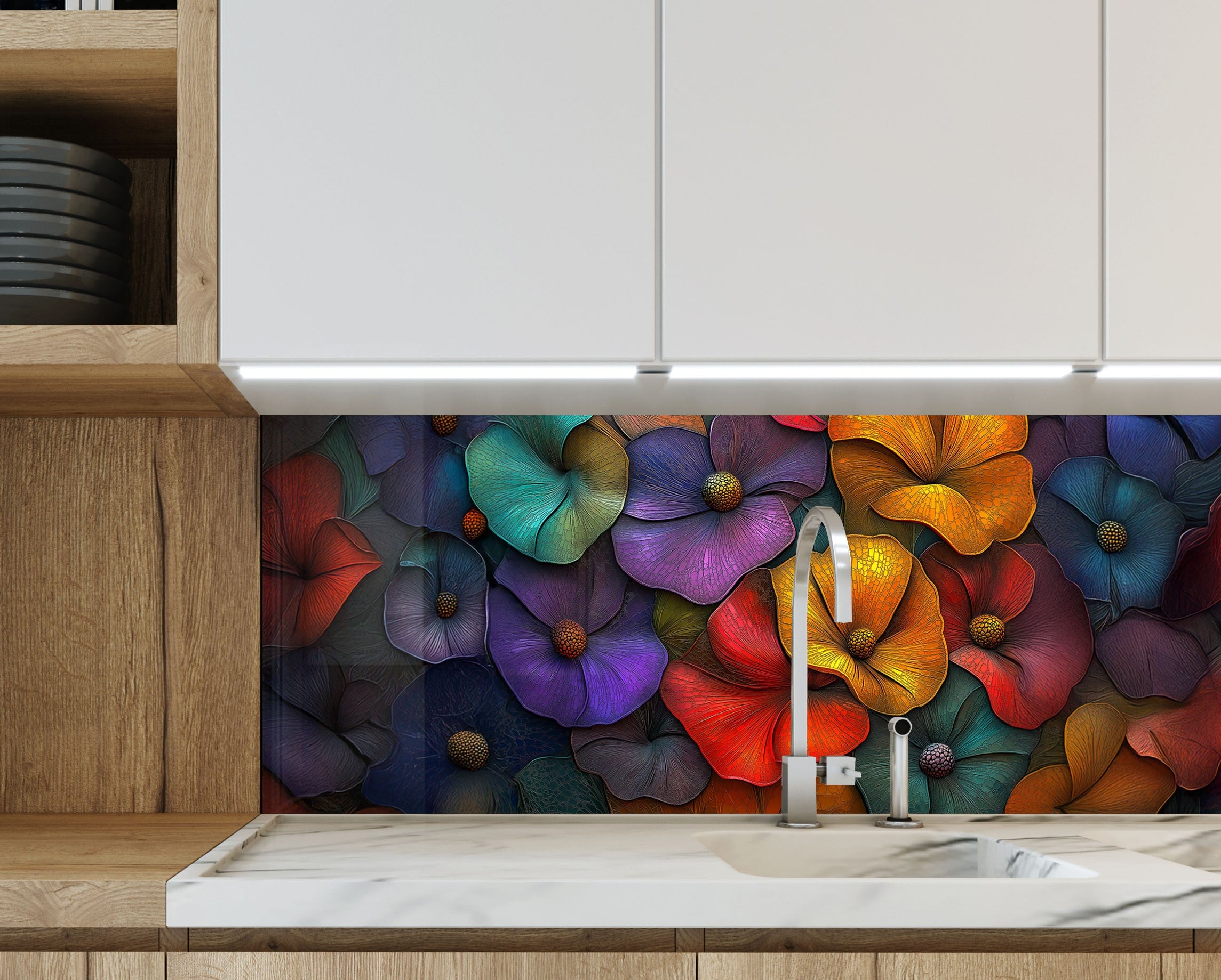 Radiant Bloom – Multicolor Floral Glass Kitchen Backsplash