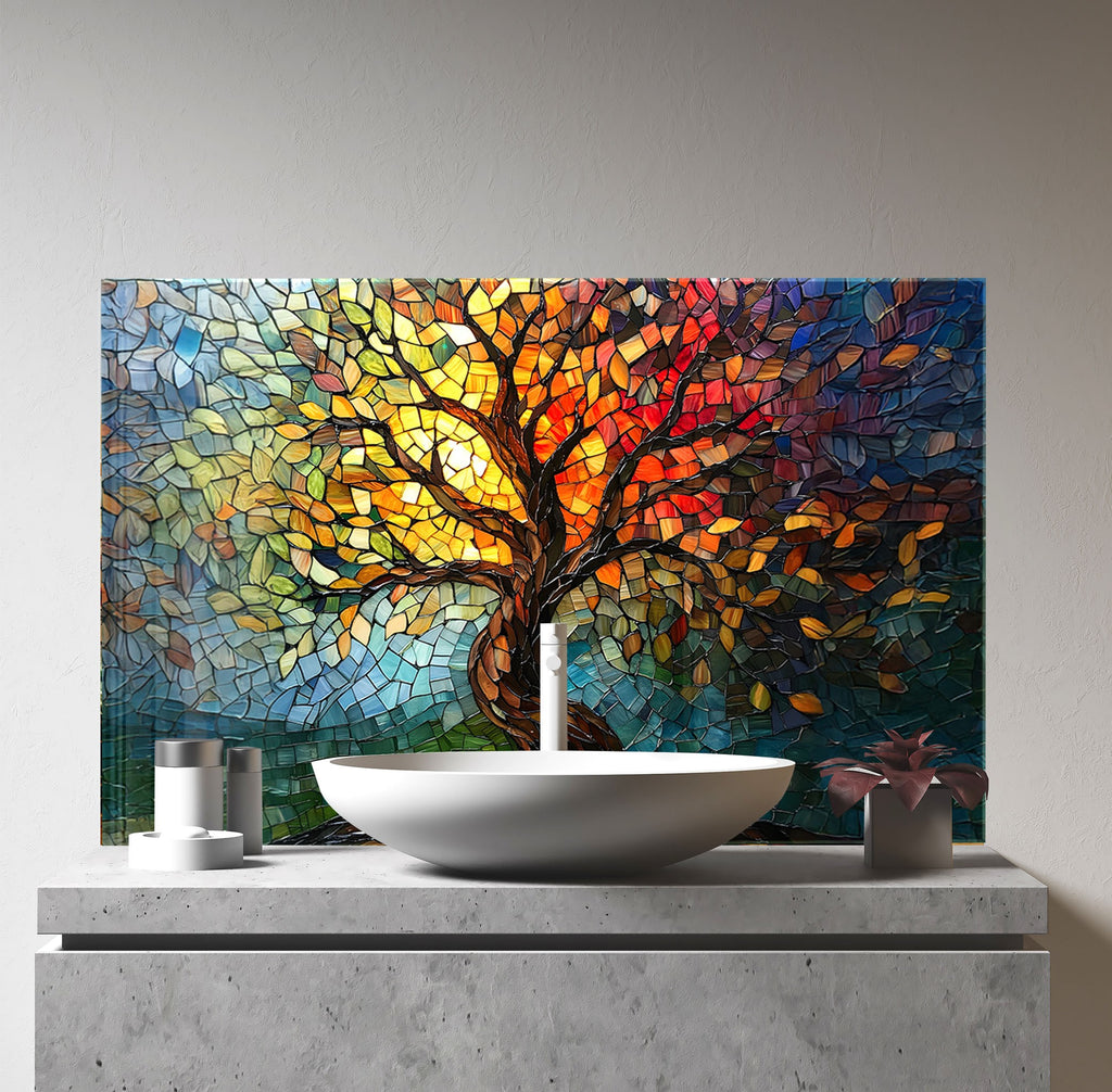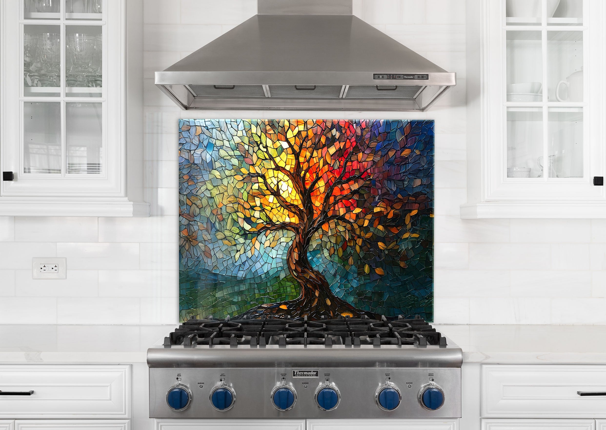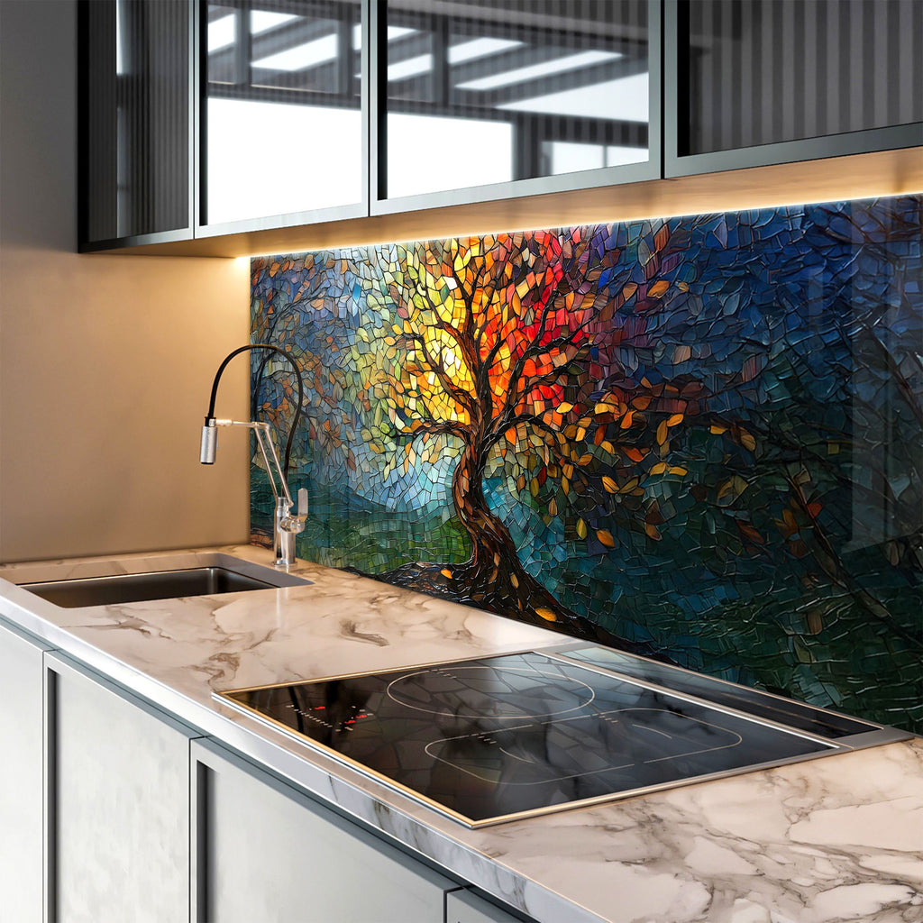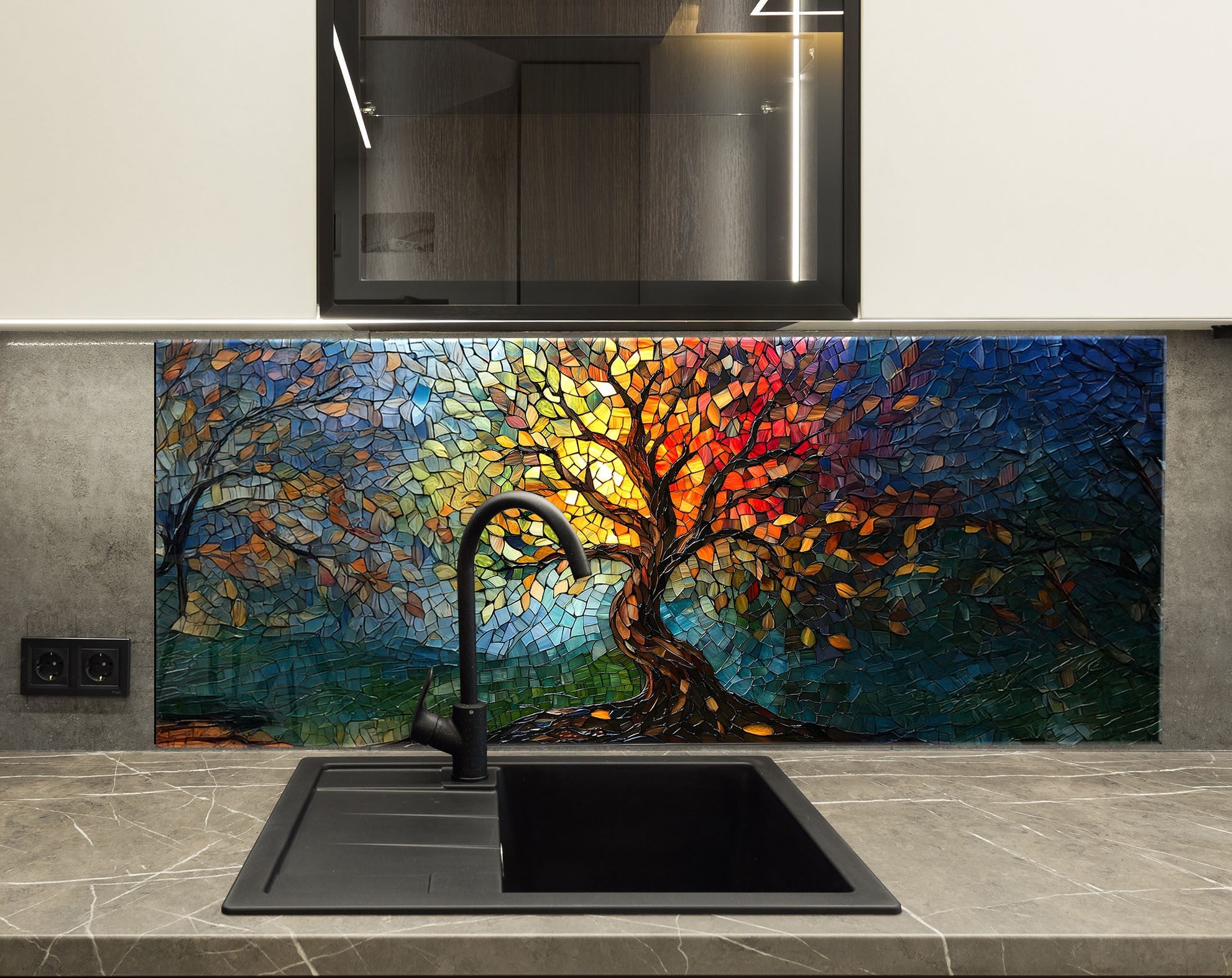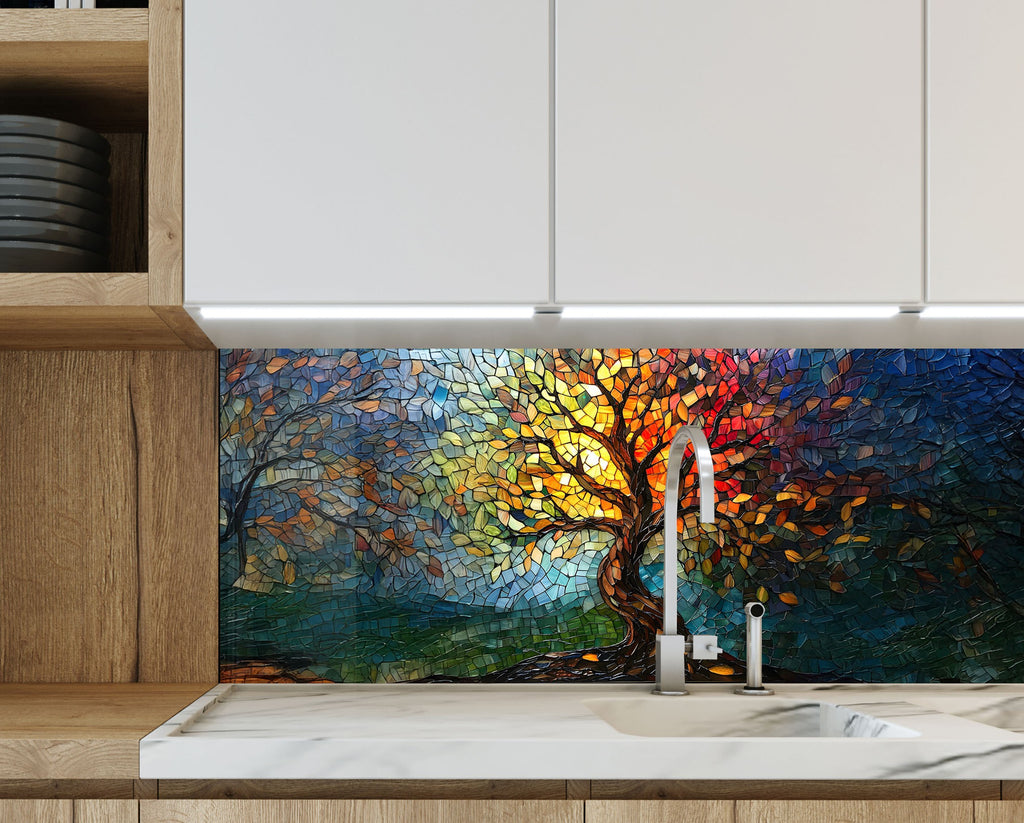 Radiant Mosaic Tree – Colorful Stained Glass Kitchen Backsplash