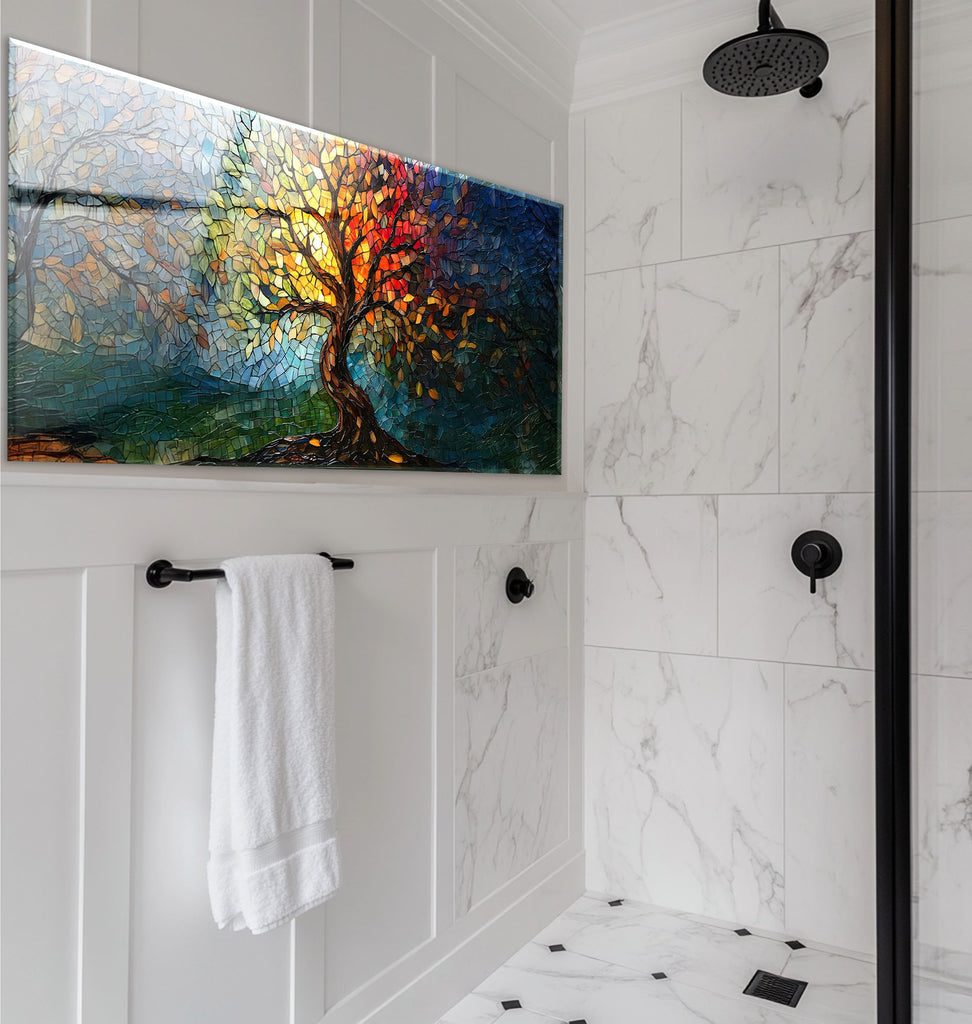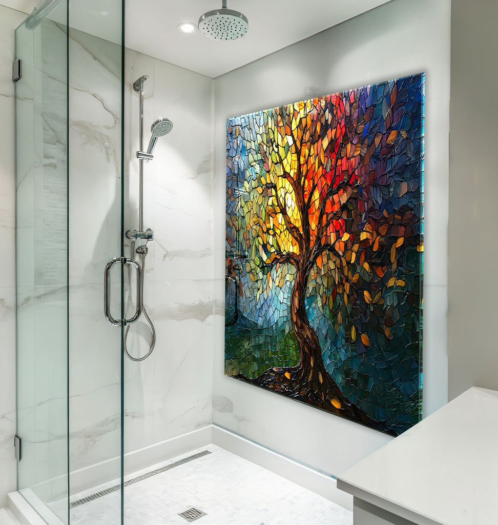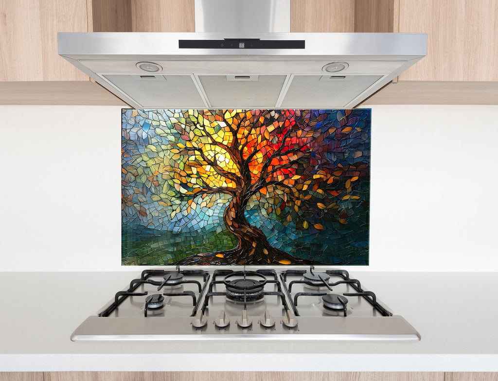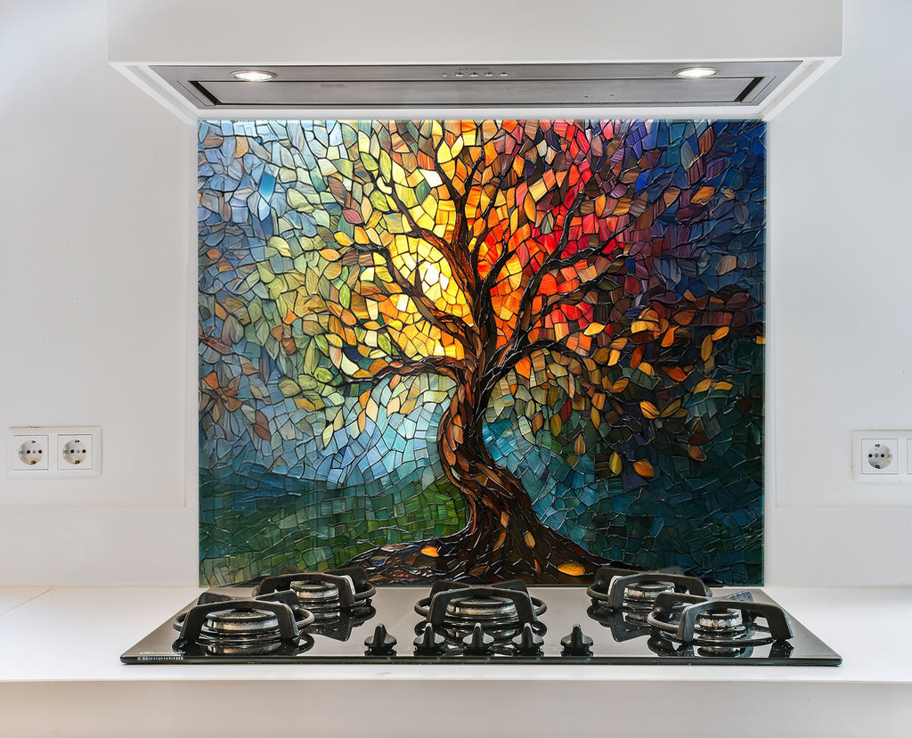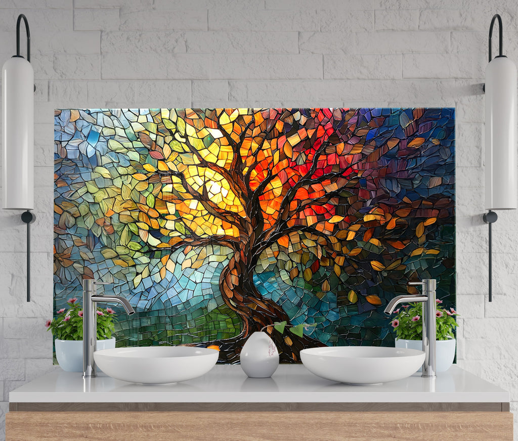 Radiant Mosaic Tree – Colorful Stained Glass Kitchen Backsplash