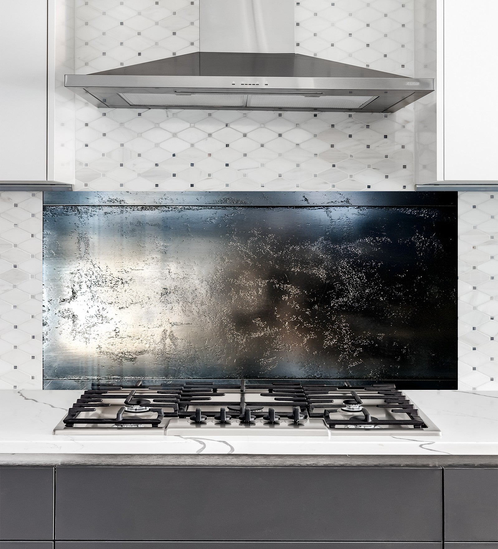 💯 Satisfaction Guaranteed – Add modern luxury to your kitchen with the Sleek Dark Metallic Glass Kitchen Backsplash.