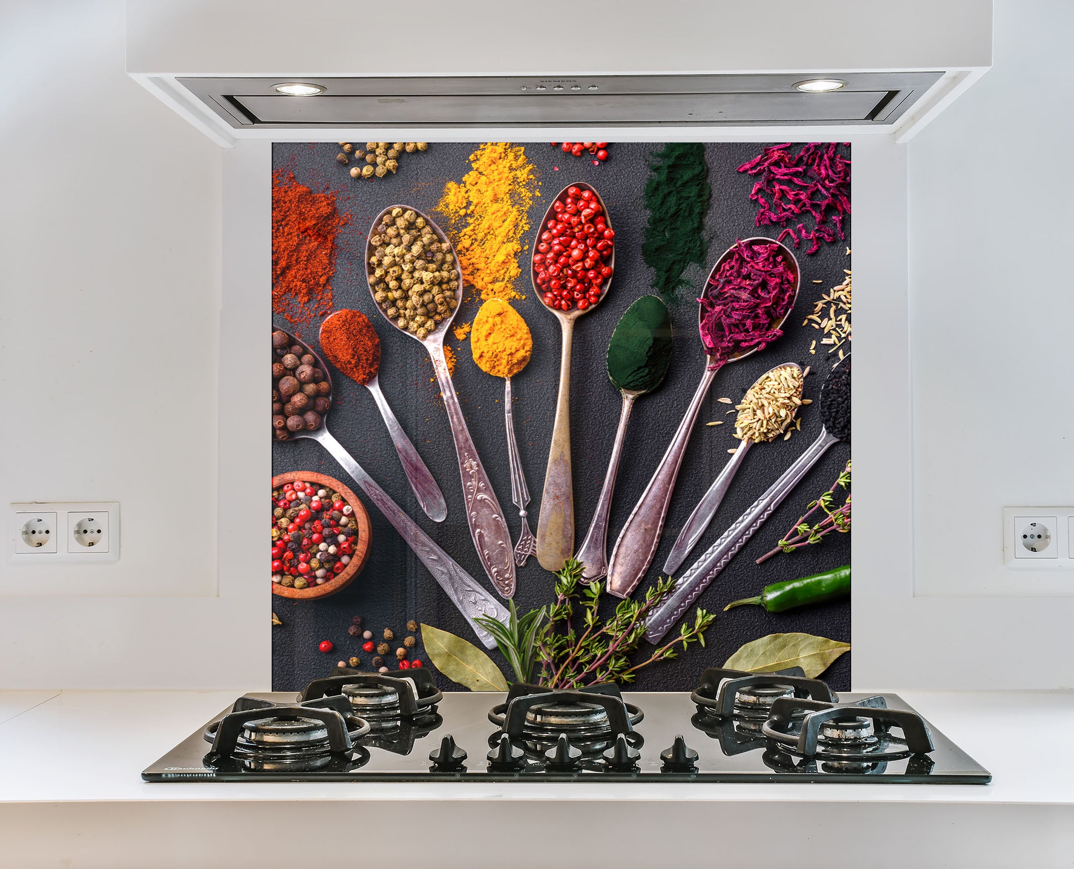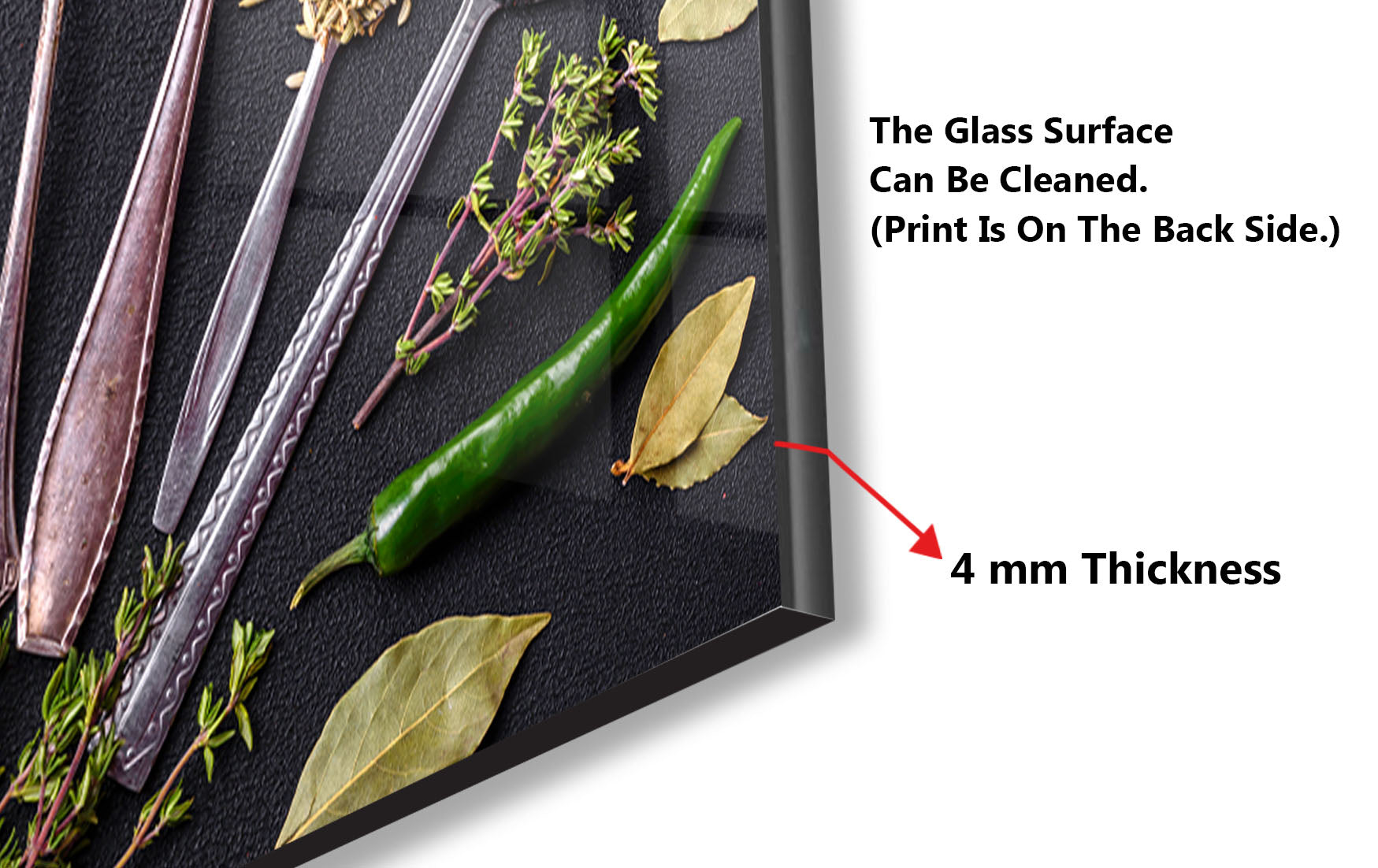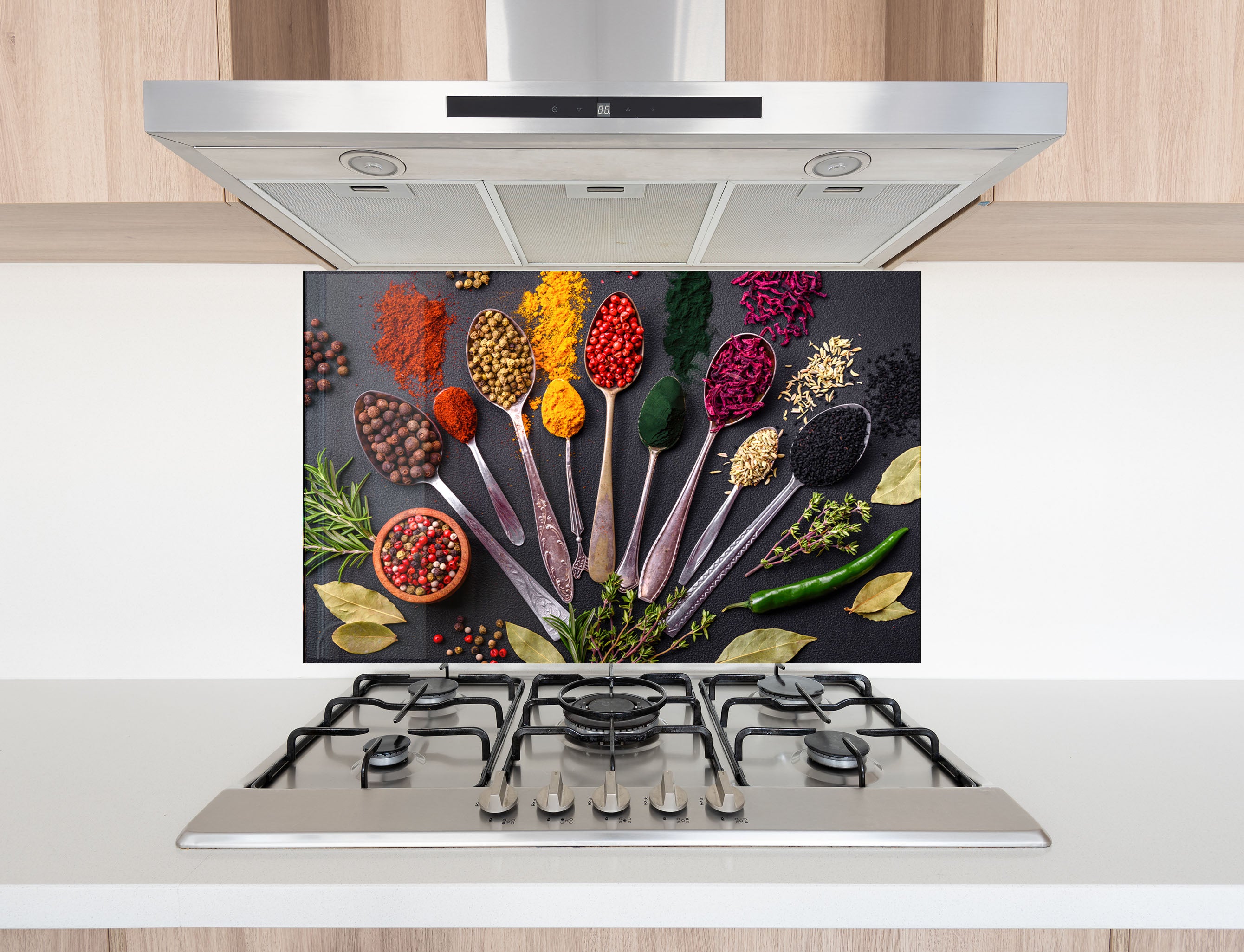 Add a touch of timeless elegance to your kitchen with the Spice Heritage Glass Kitchen Backsplash, showcasing vintage silver spoons filled with exotic spices and herbs against a rich, textured background. This artistic and bold design enhances any kitchen with deep colors, intricate details, and a rustic charm. Printed with X ultra-clear 8K UV technology, the textures and vibrant hues are incredibly lifelike. Built with 10x reinforced tempered glass (4mm thick), it’s heat-resistant, scratch-proof, and effortless to clean, offering both beauty and durability.