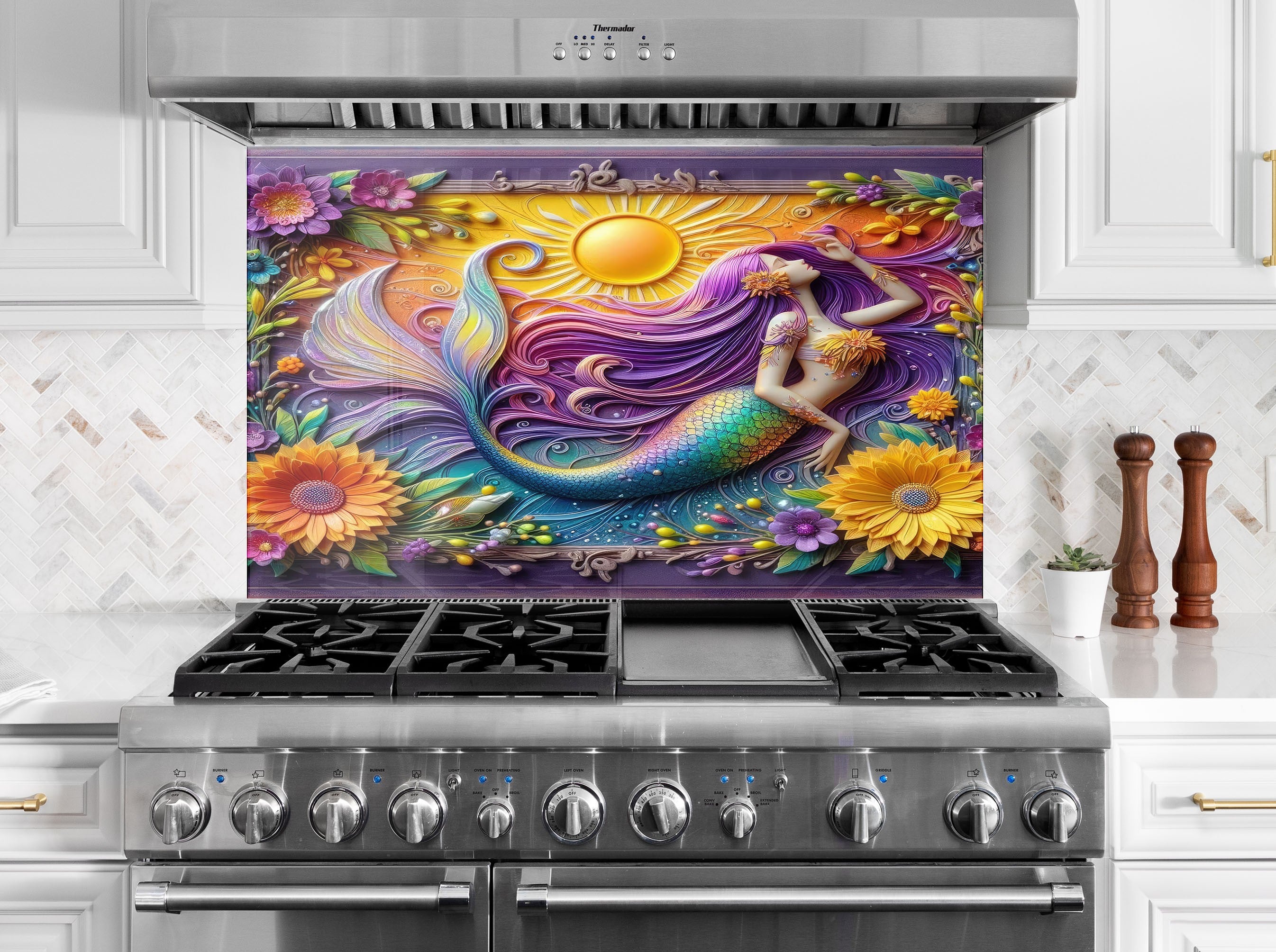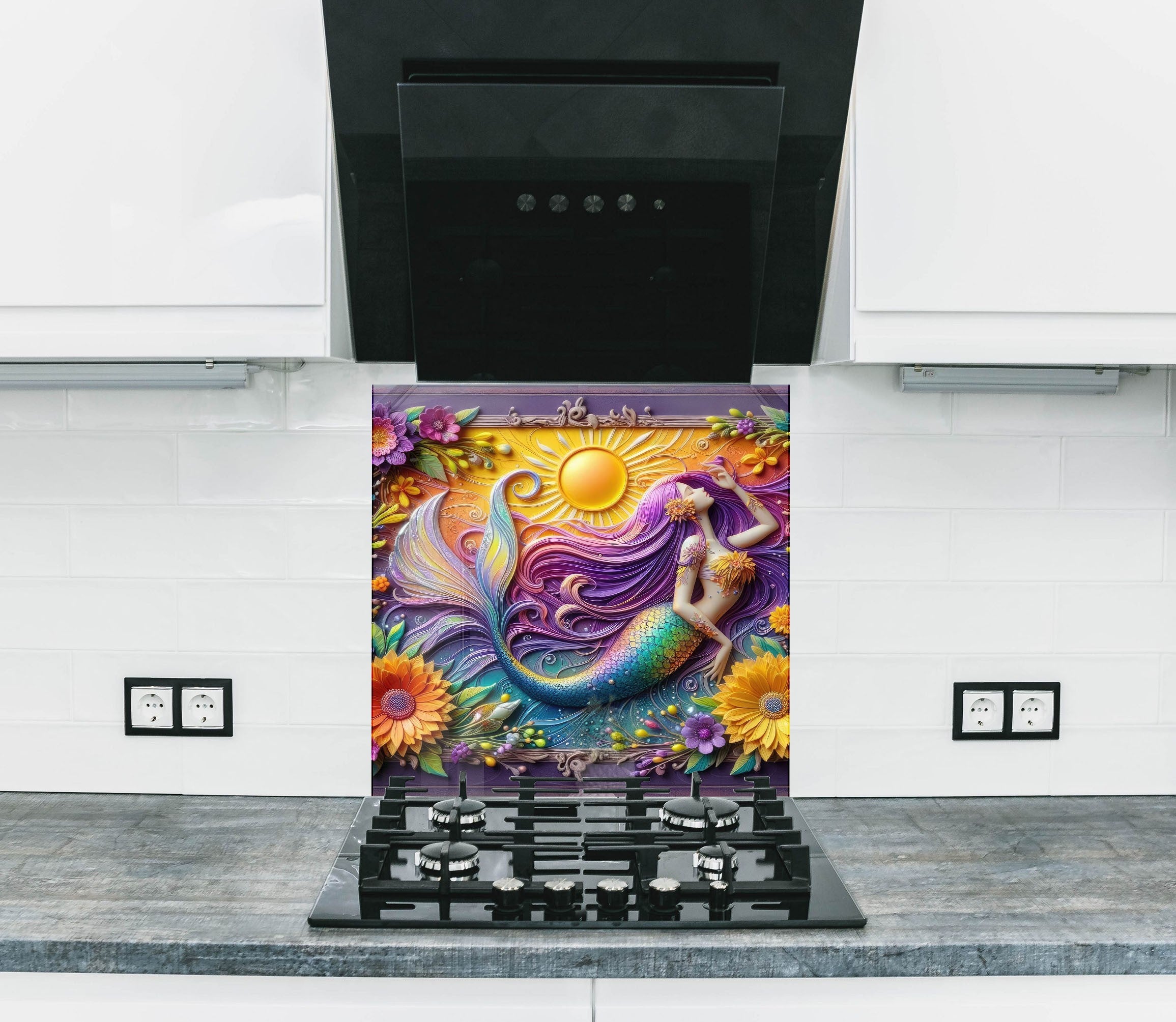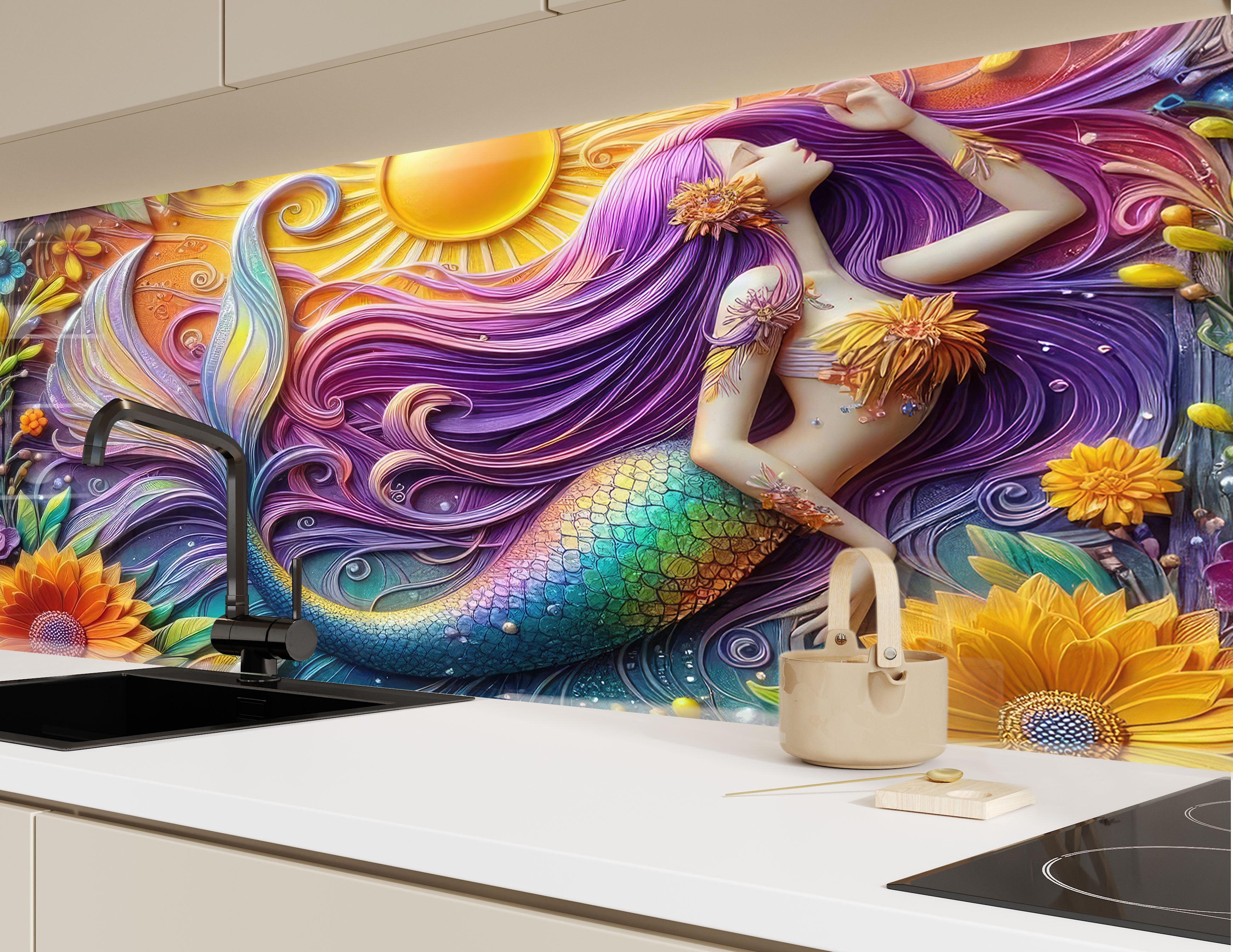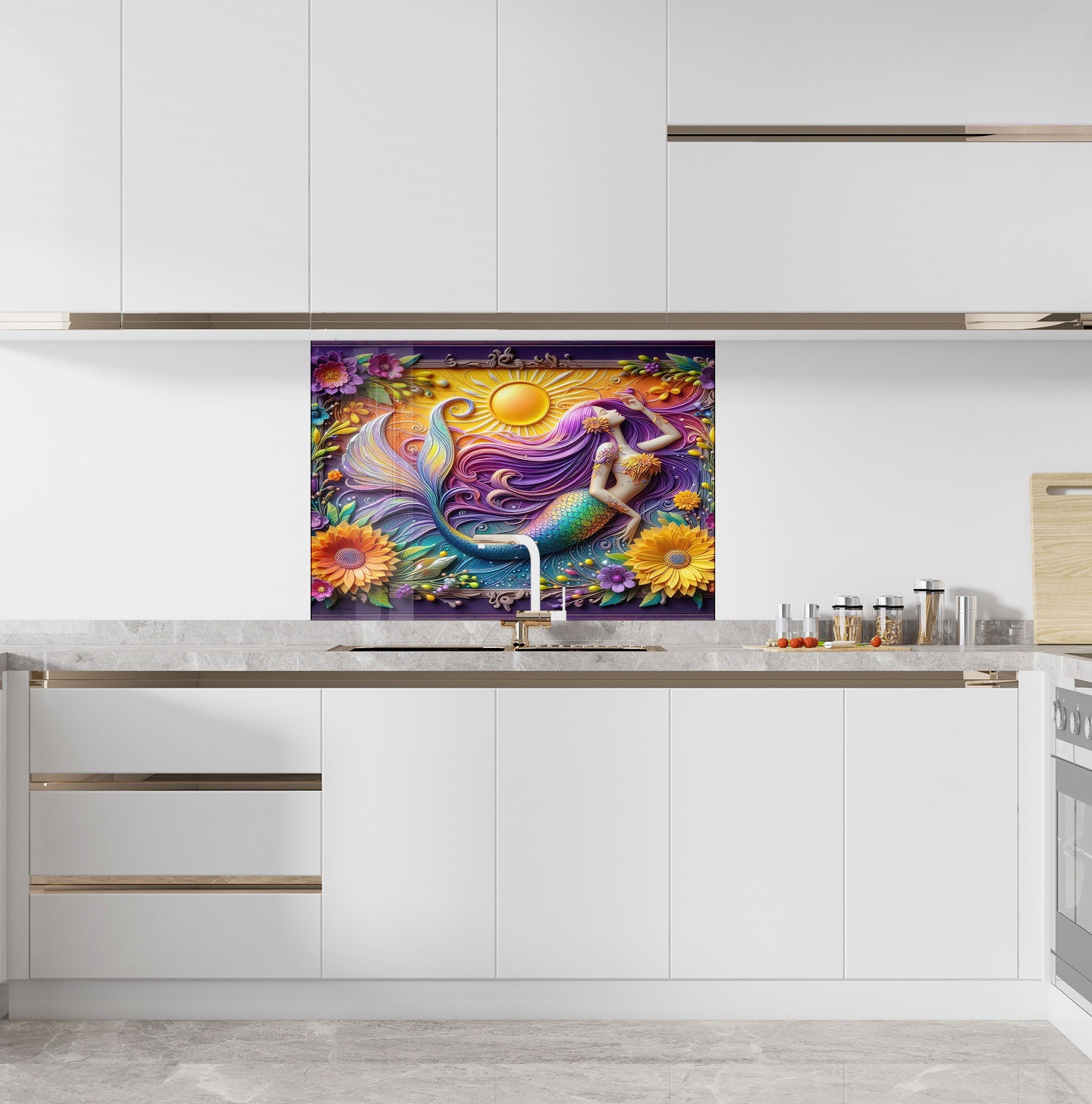 Sunlit Mermaid - Glass Kitchen Backsplash