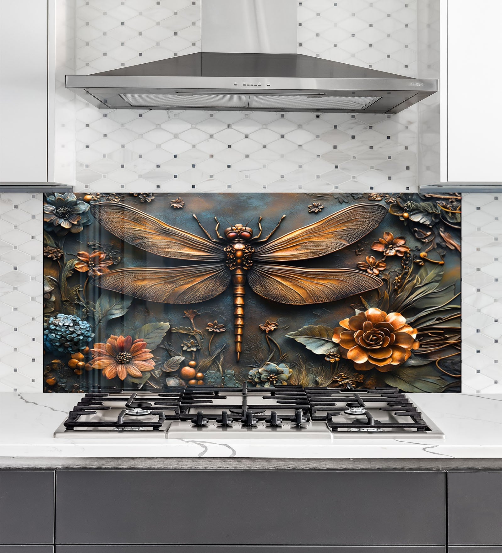 Vintage Bronze Dragonfly - Glass Kitchen Backsplash