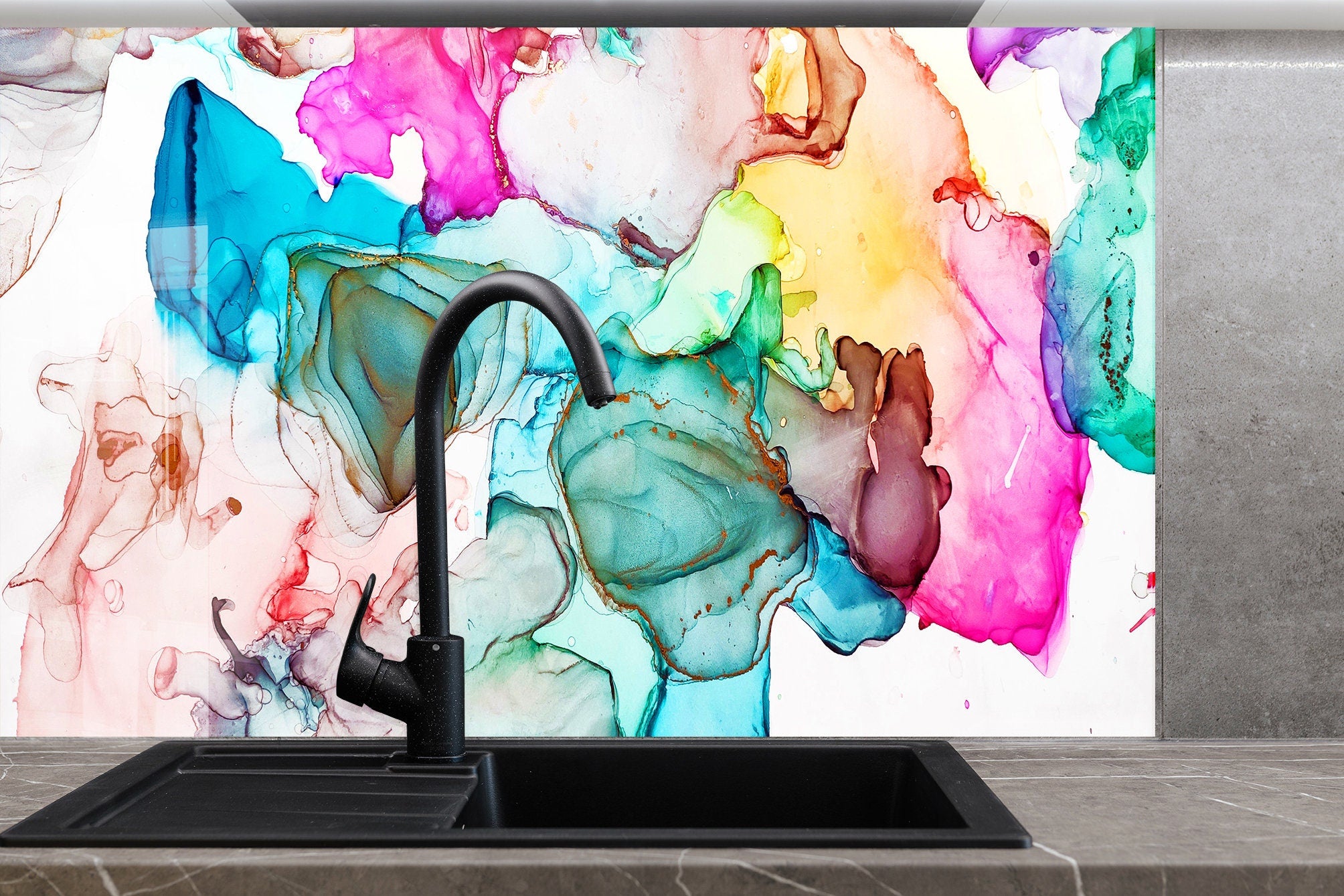 Transform your kitchen into a vibrant work of art with this Watercolor Dream Glass Kitchen Backsplash. The soft, fluid color splashes blend harmoniously, creating a mesmerizing, hand-painted effect. Its bright, airy aesthetic brings a sense of creativity, freshness, and modern sophistication to your space.