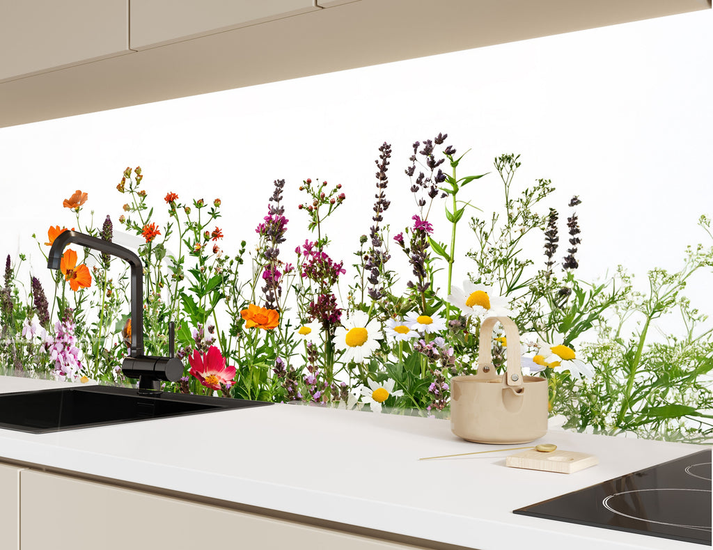 Wildflower Meadow – Colorful Garden-Inspired Glass Kitchen Backsplash